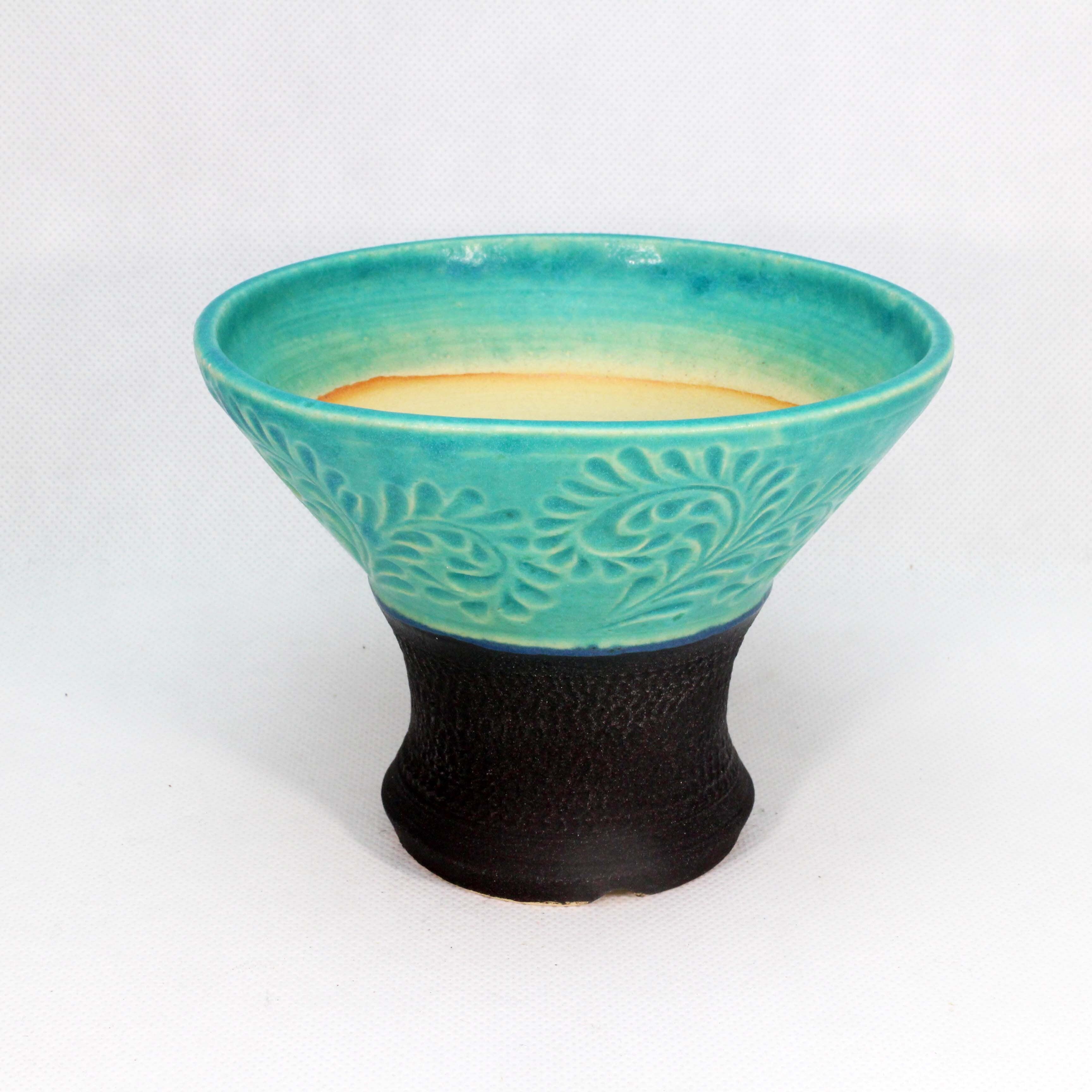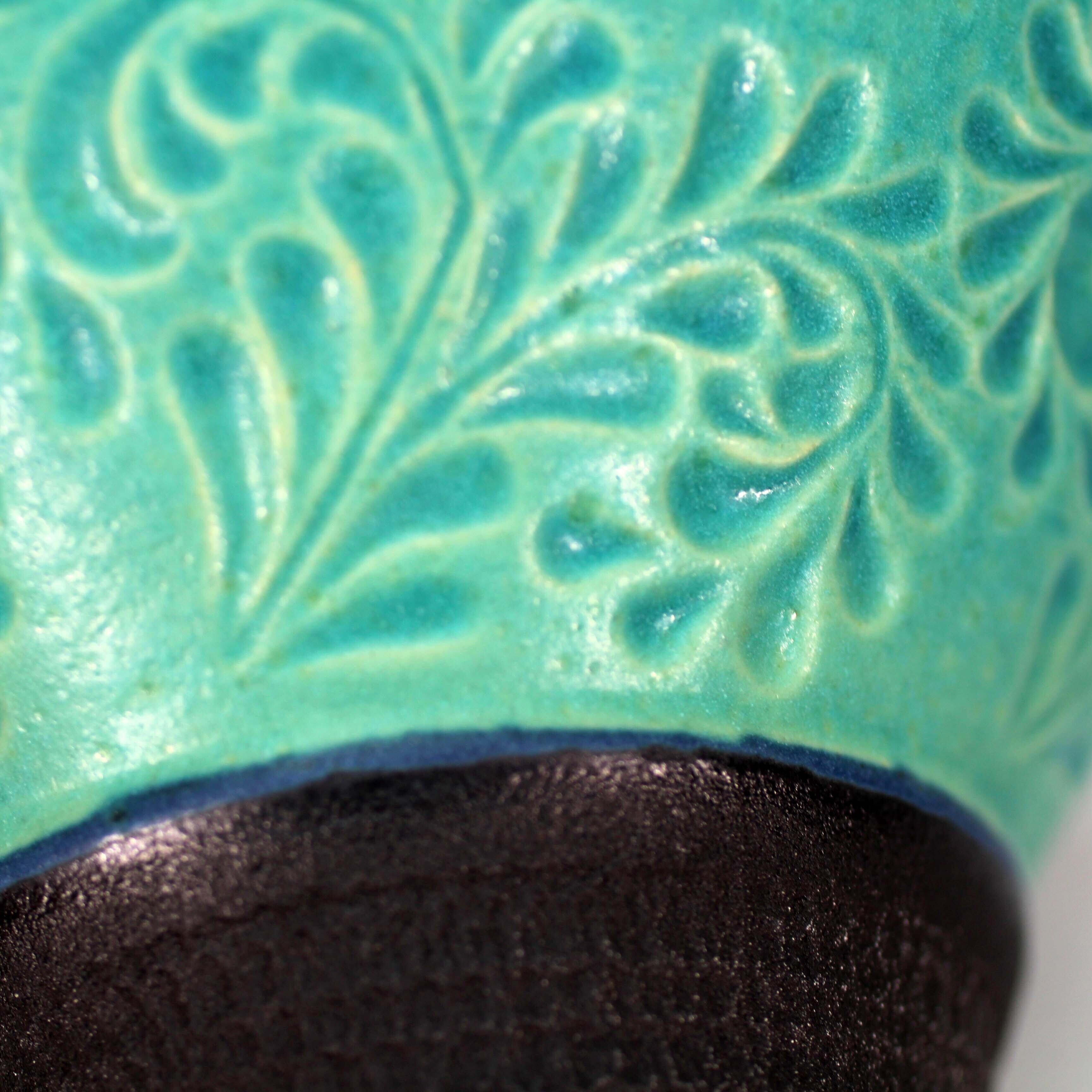 トルコ青と黒釉のツートンです。