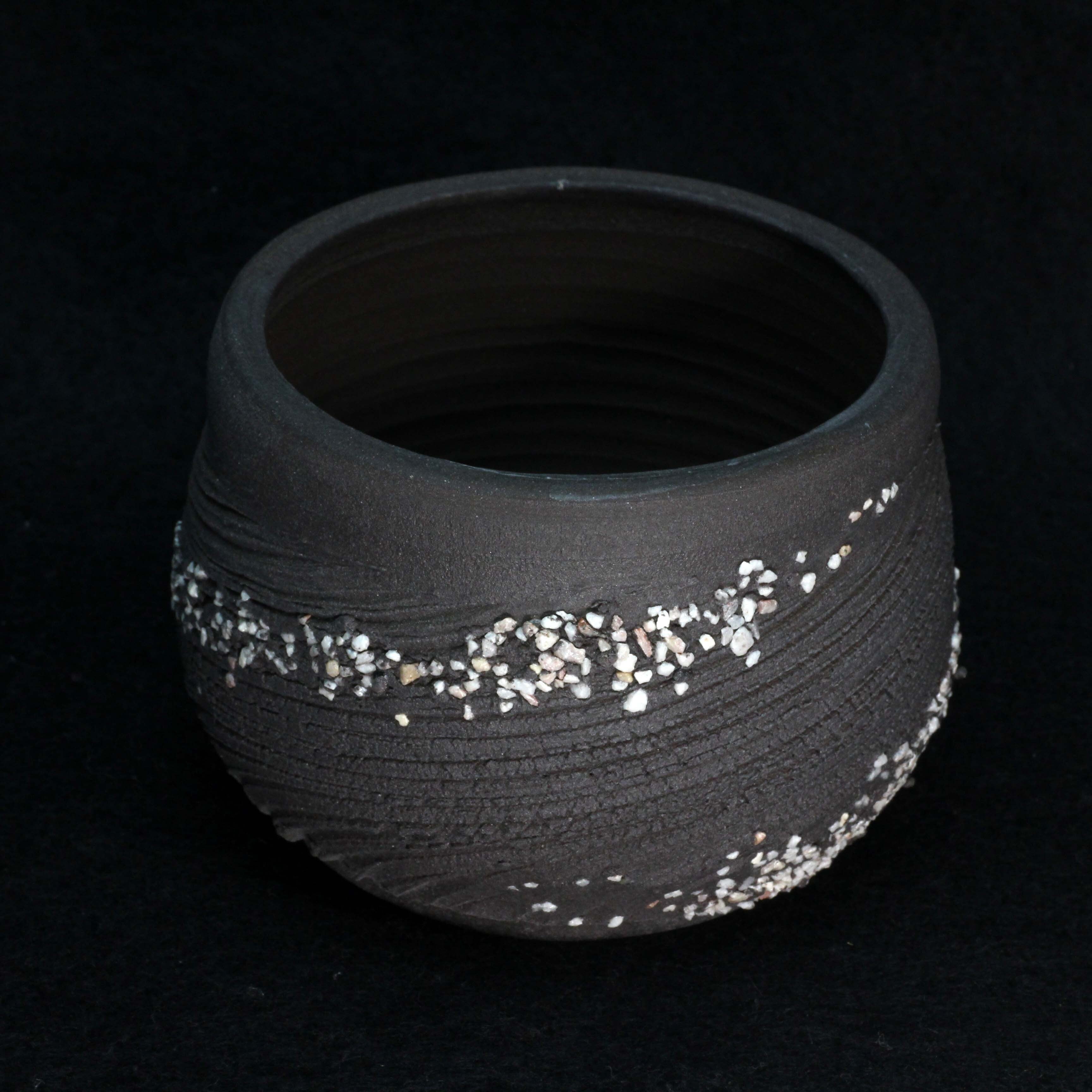 石は透明釉でくっついているだけなので、強くひっかくと取れるかもしれません。