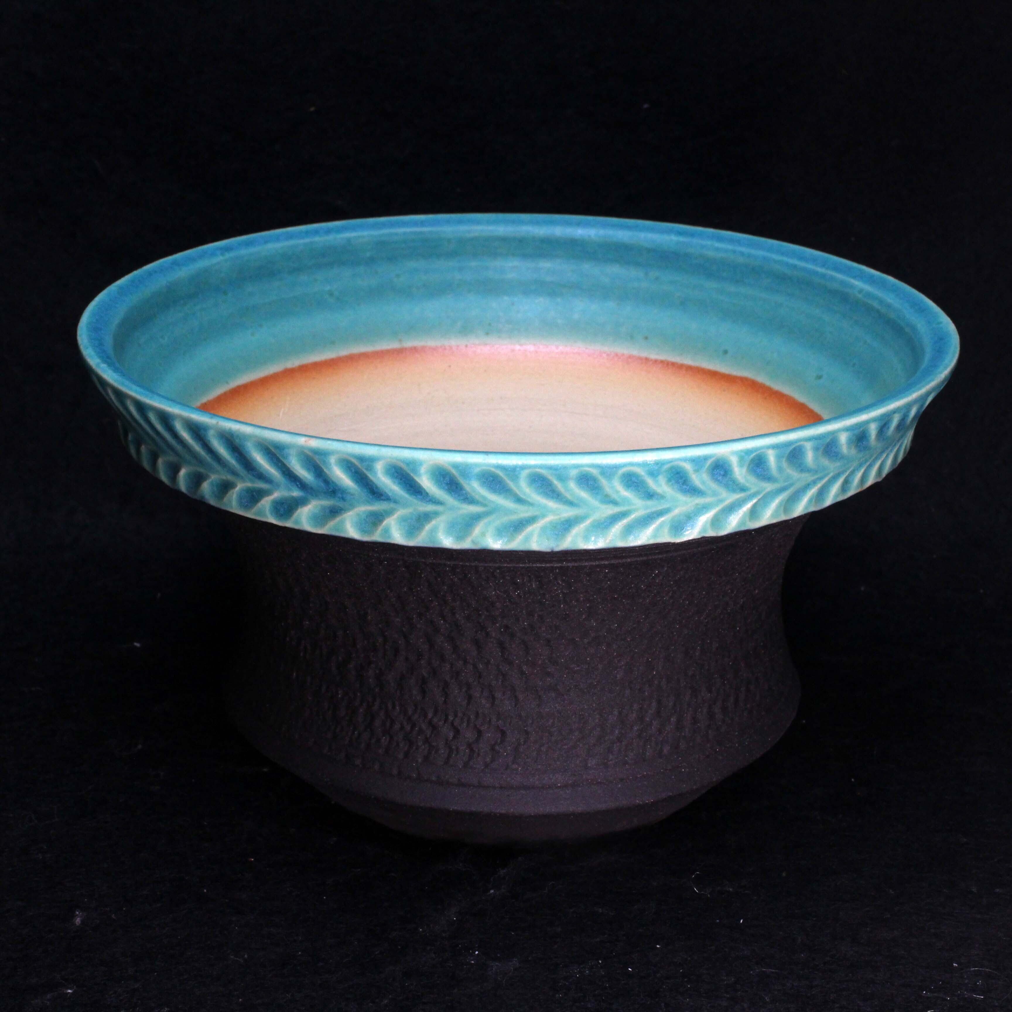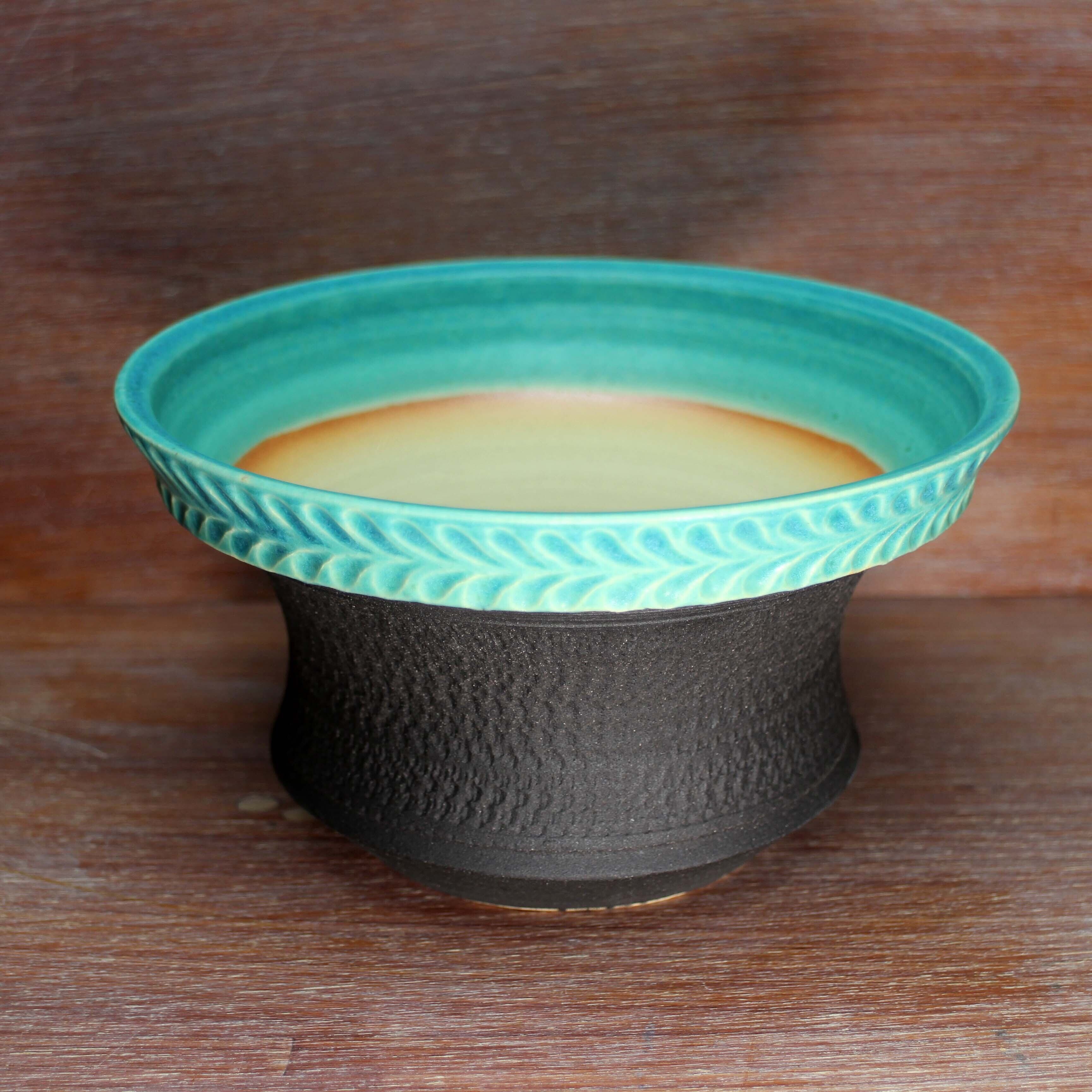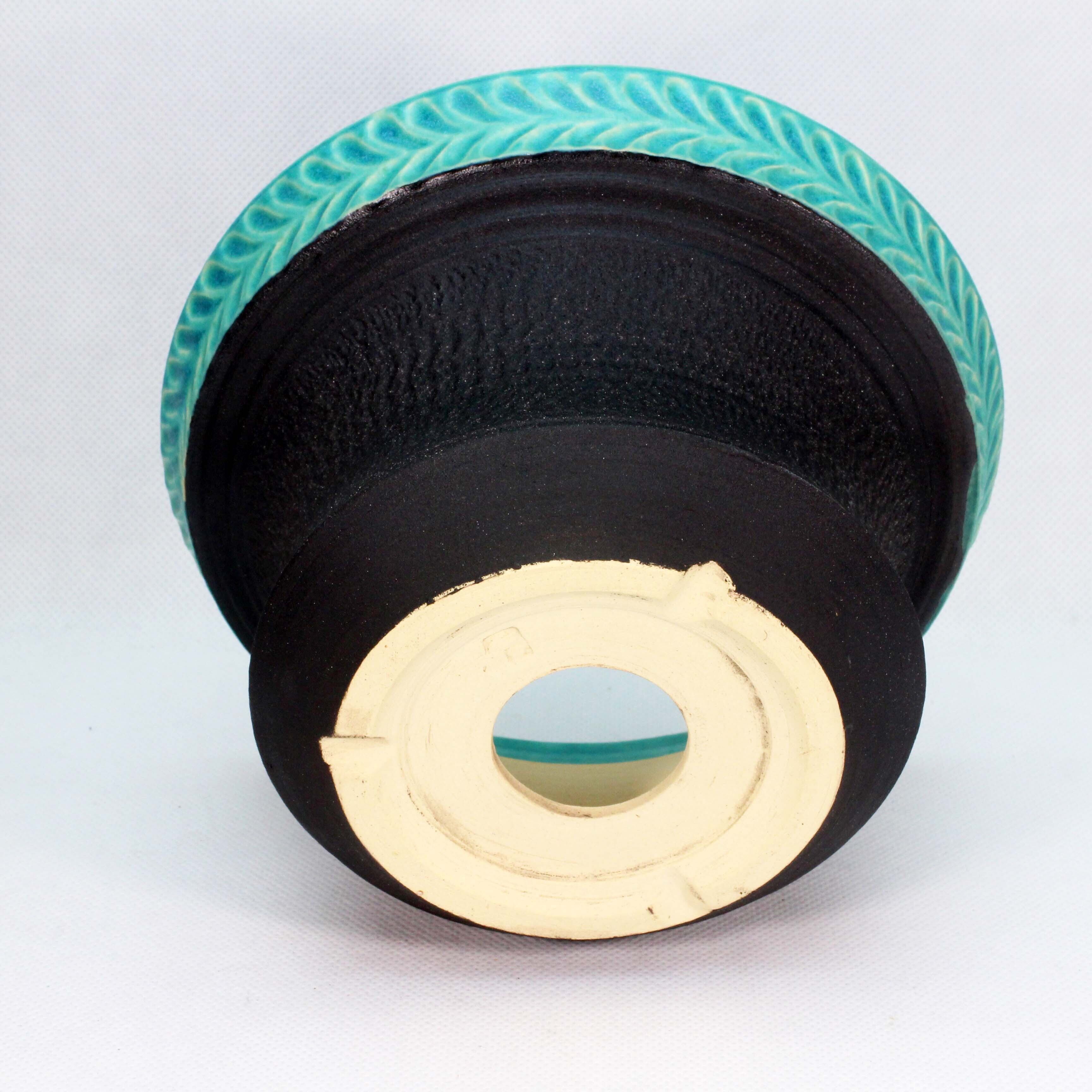 トルコ青と黒釉のツートンです。