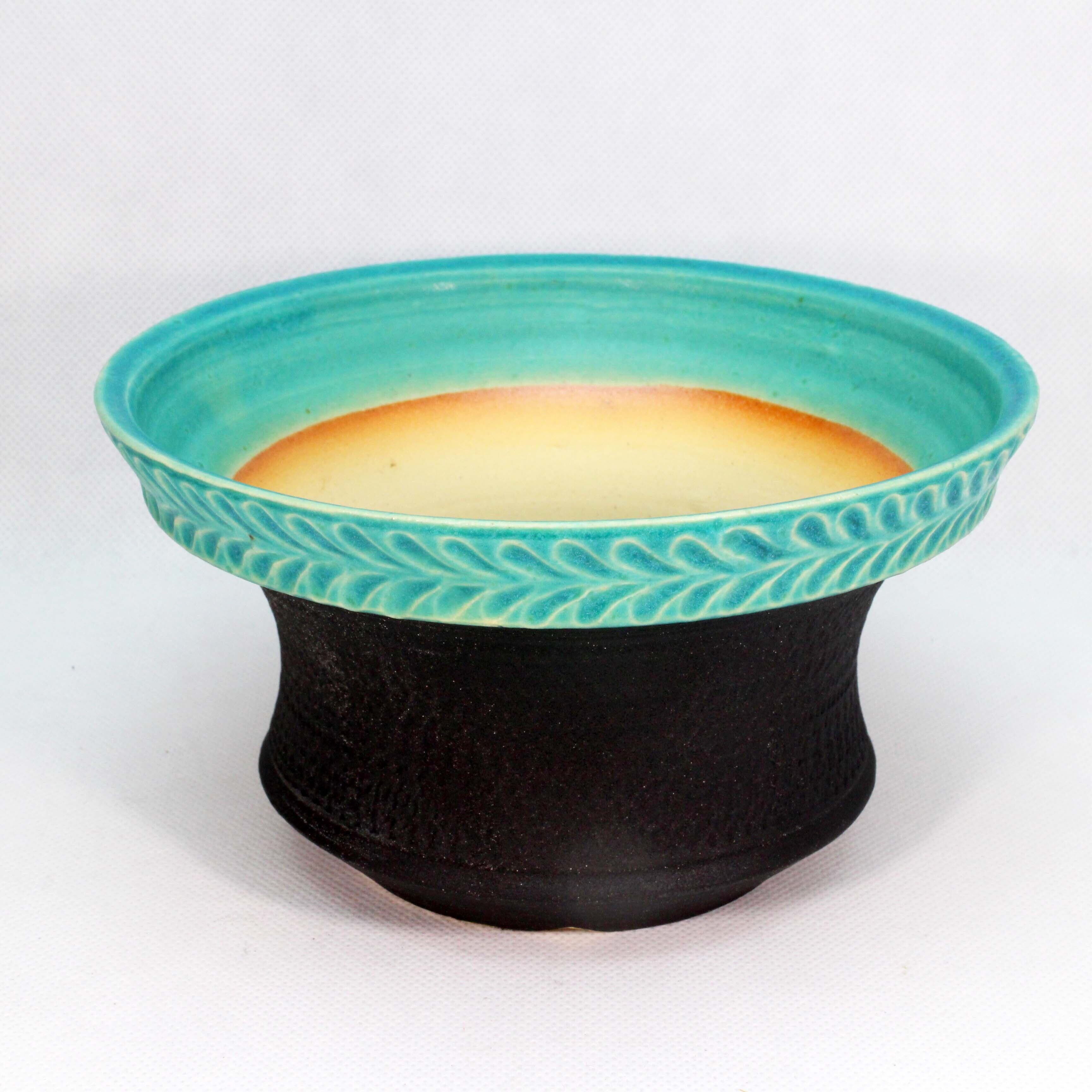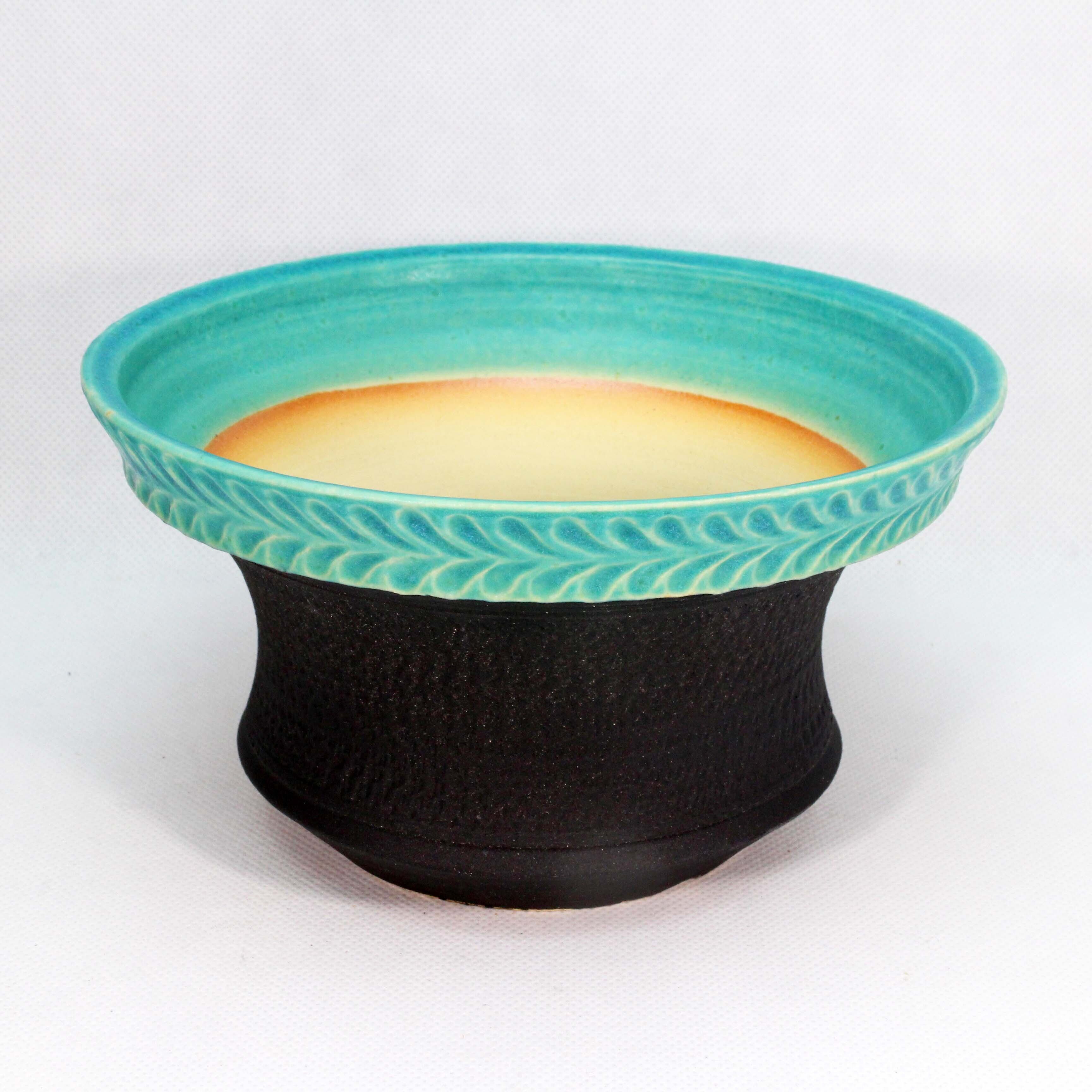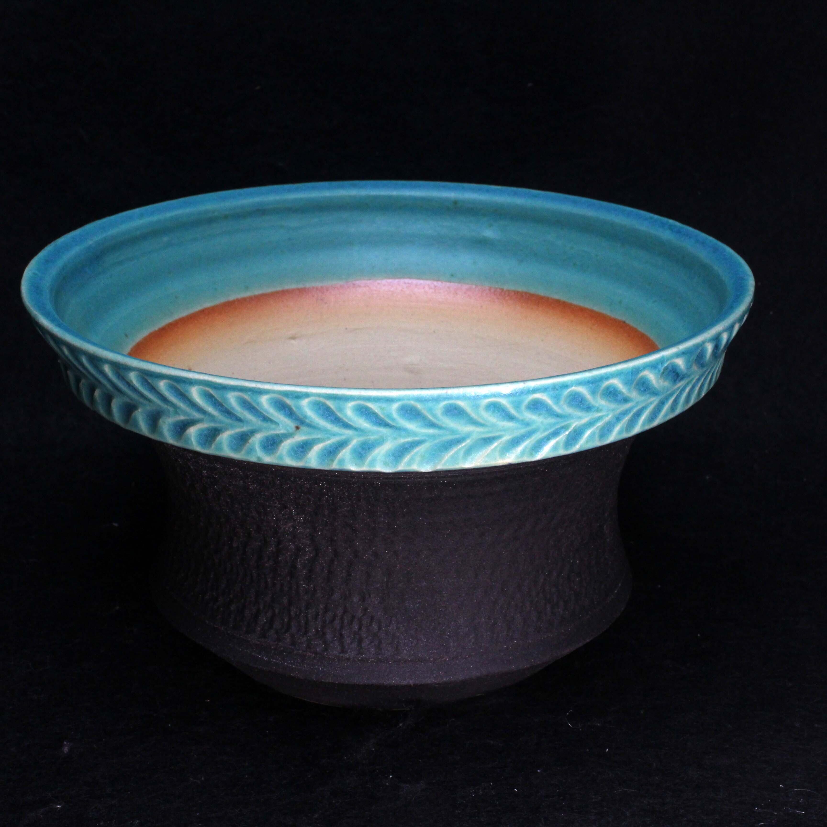 トルコ青と黒釉のツートンです。