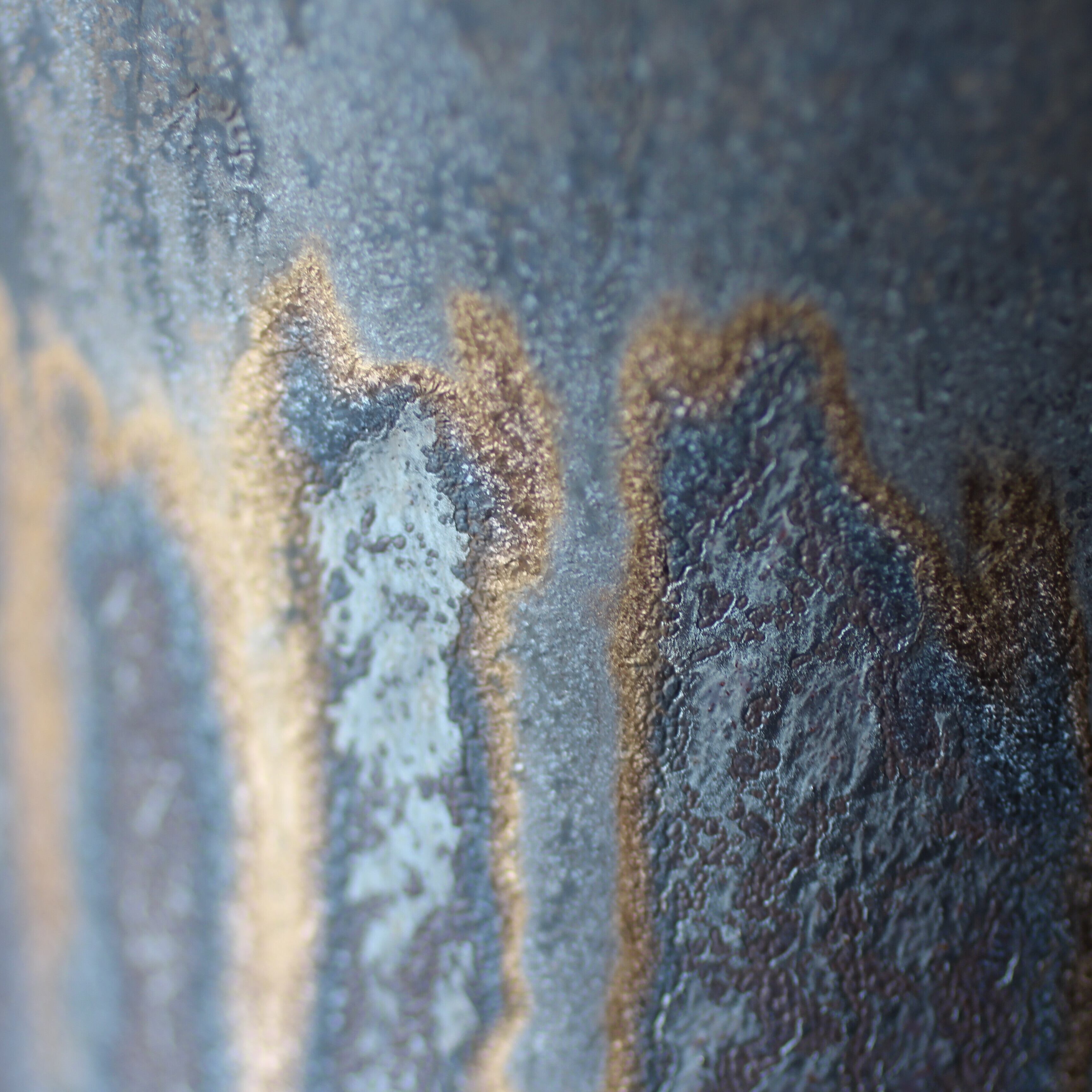 上部に金色が出る釉薬。下部はマンガン釉です。