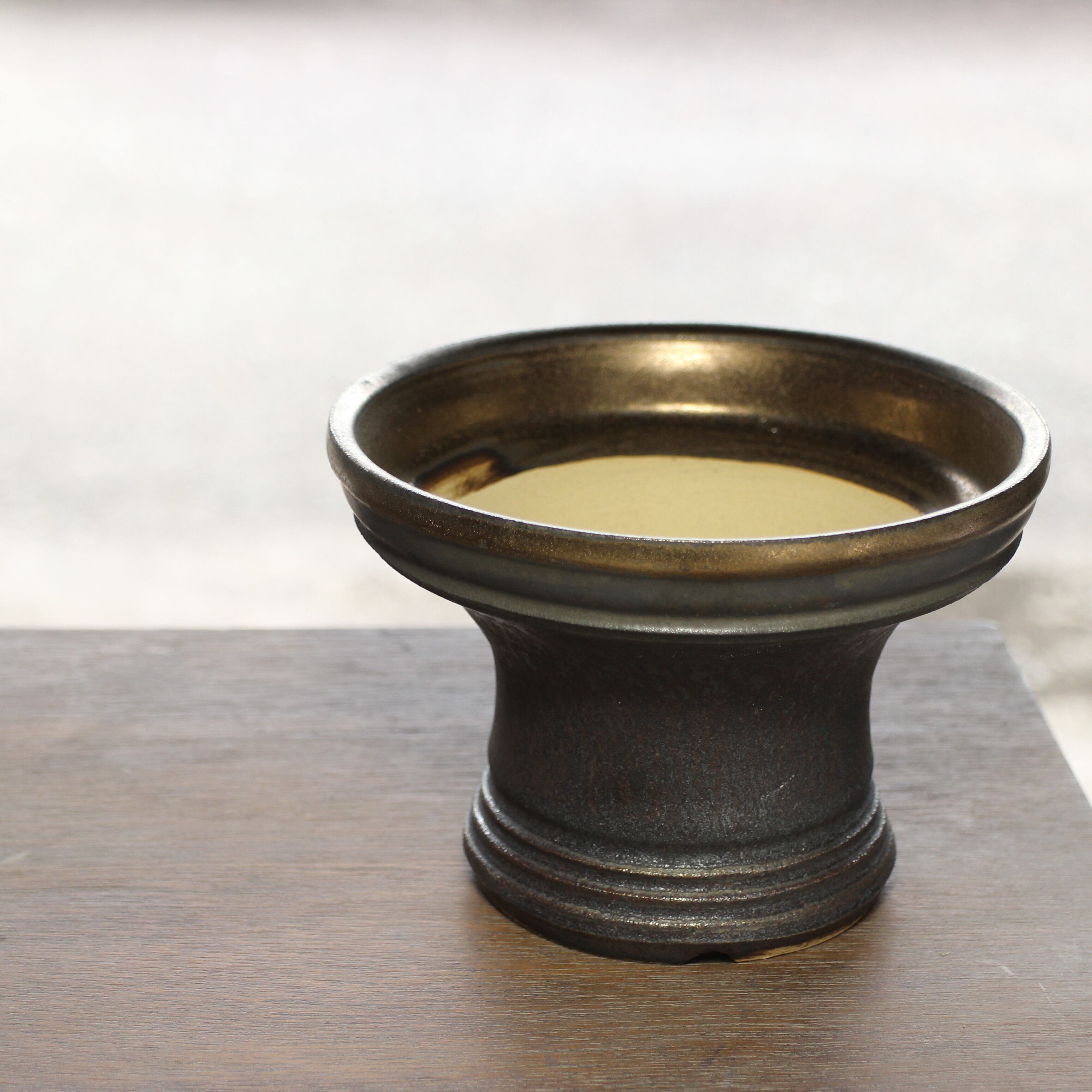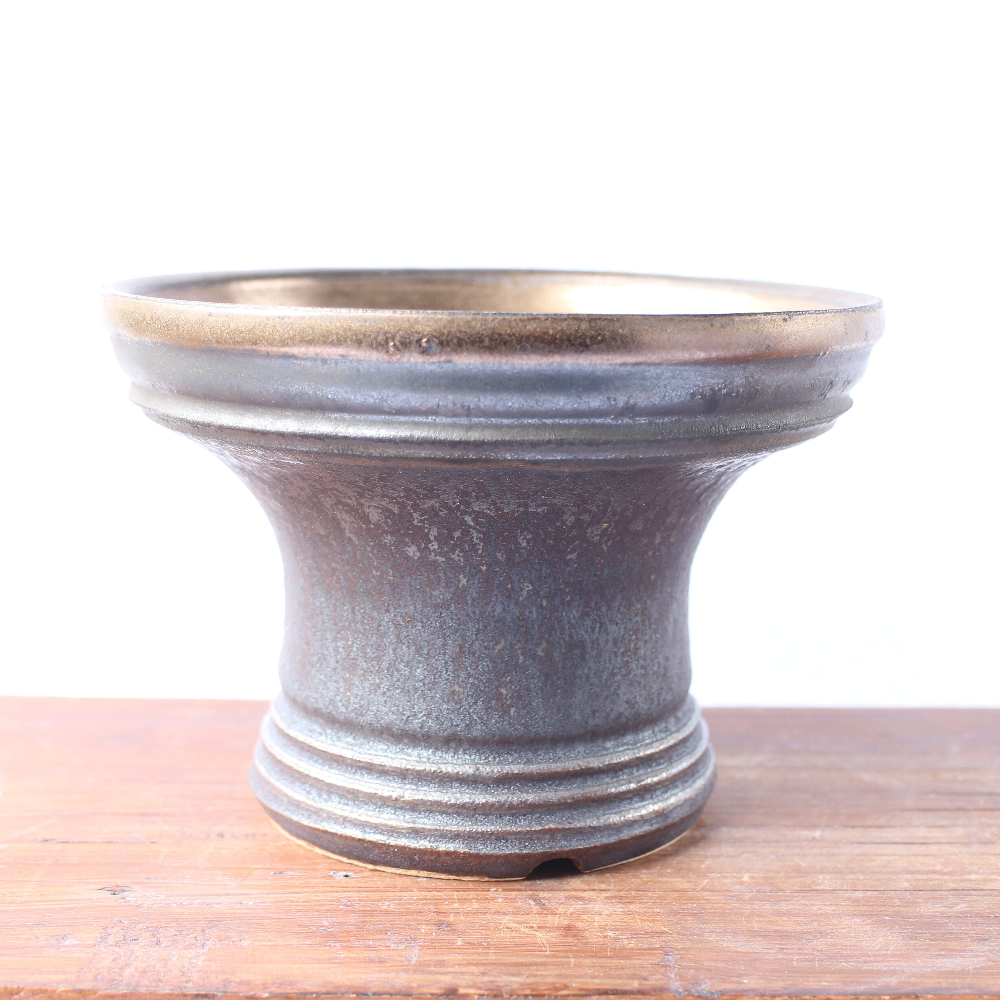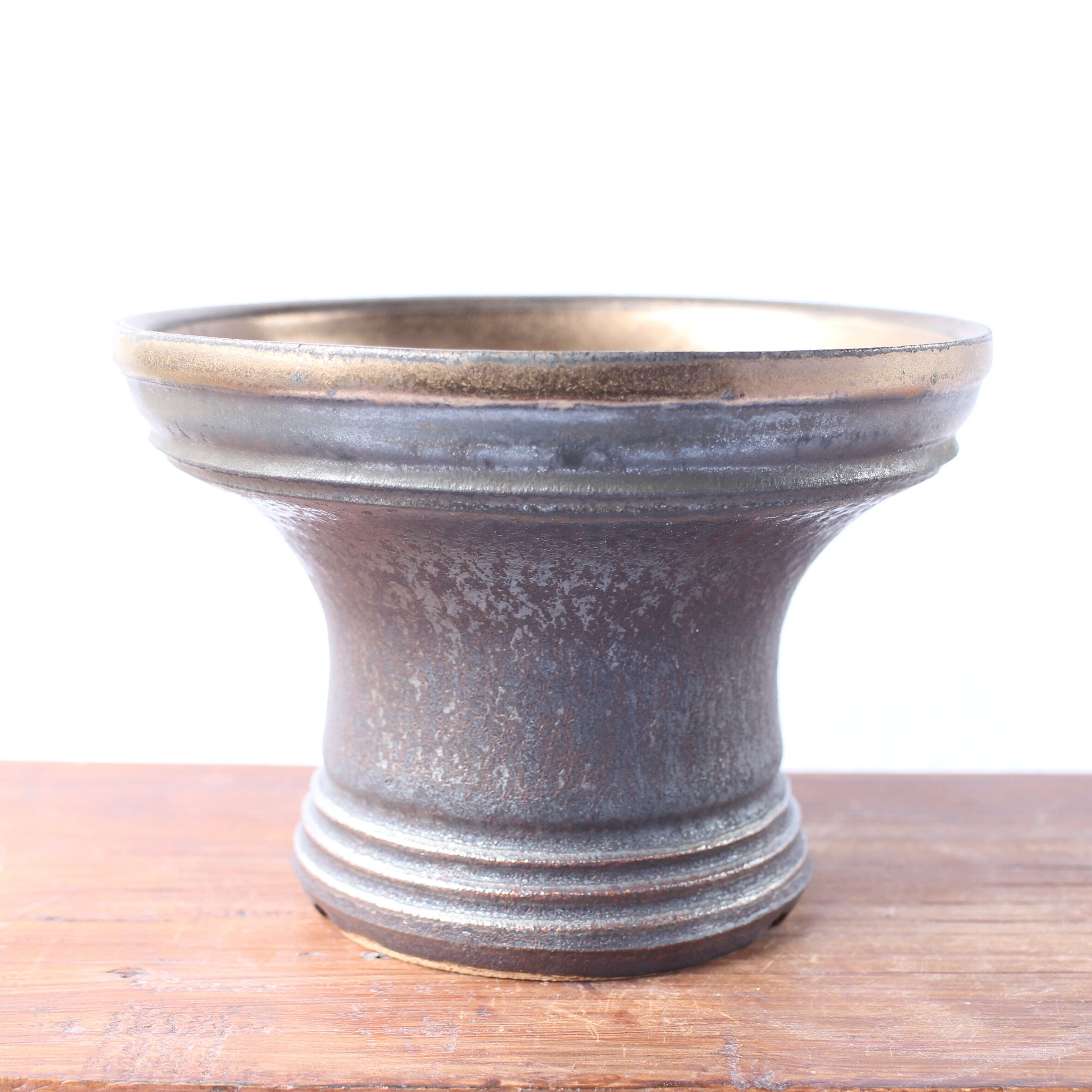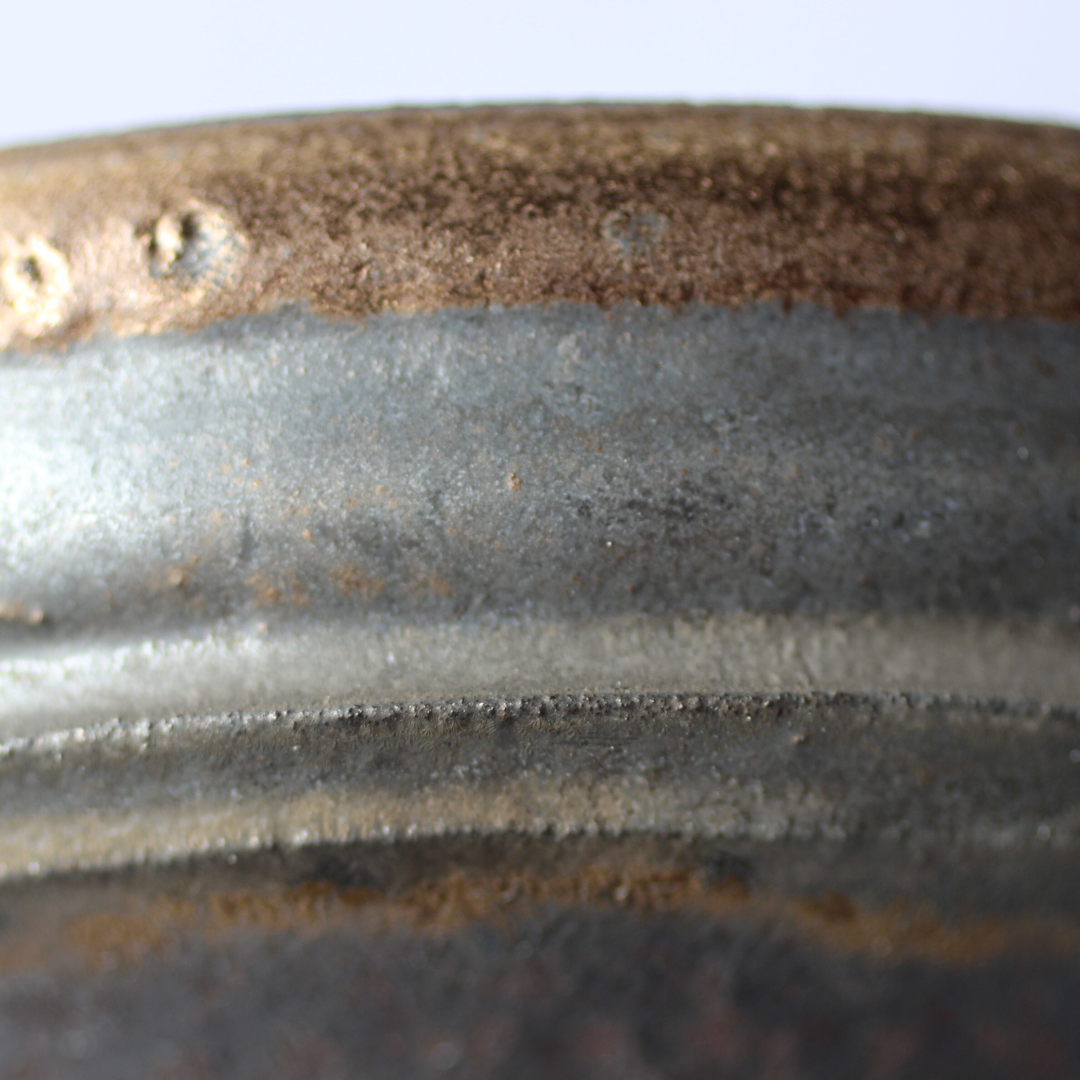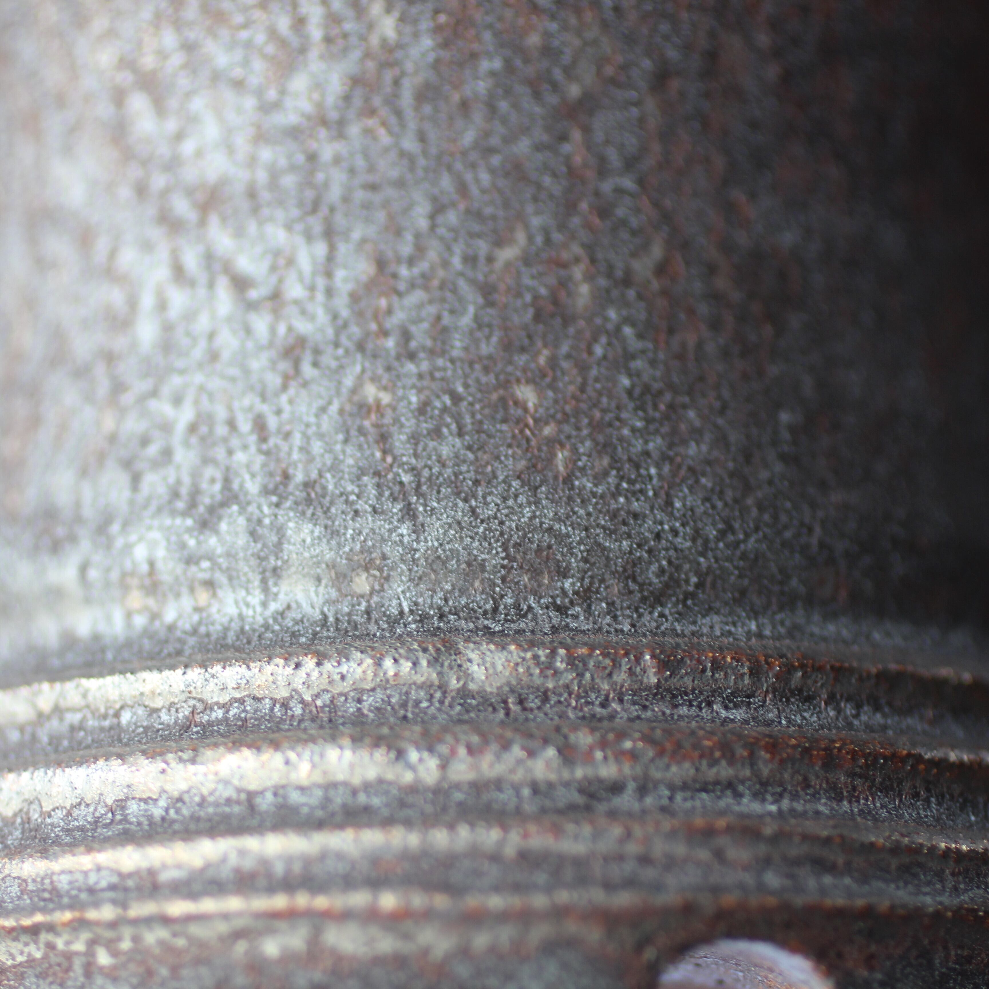 胴の部分に飛びカンナを施した後マンガン釉で仕上げています。