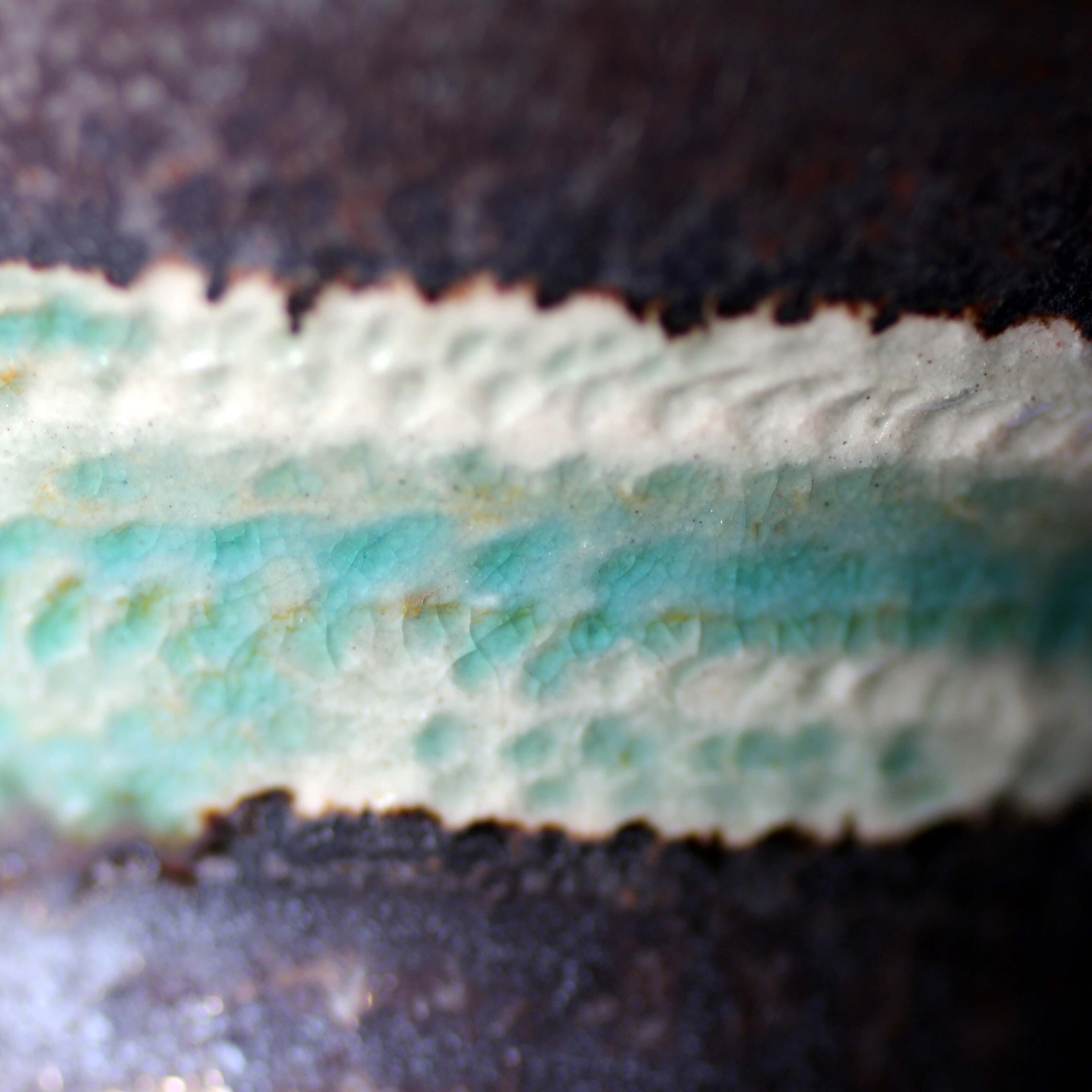 中央に薄いトルコ青釉で帯状にアクセント入れています。