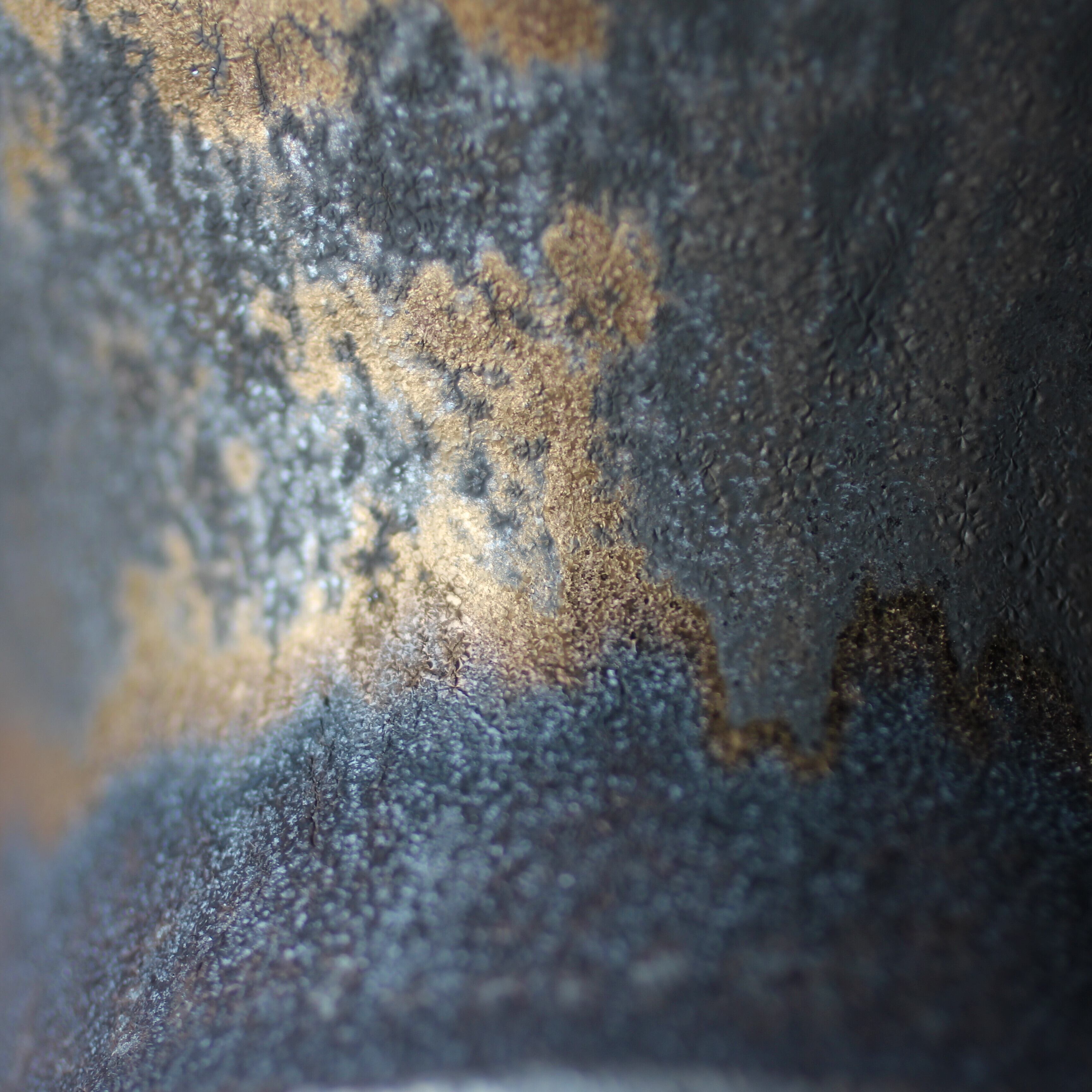 上部に金色が出る釉薬に金斑。下部はマンガン釉です。