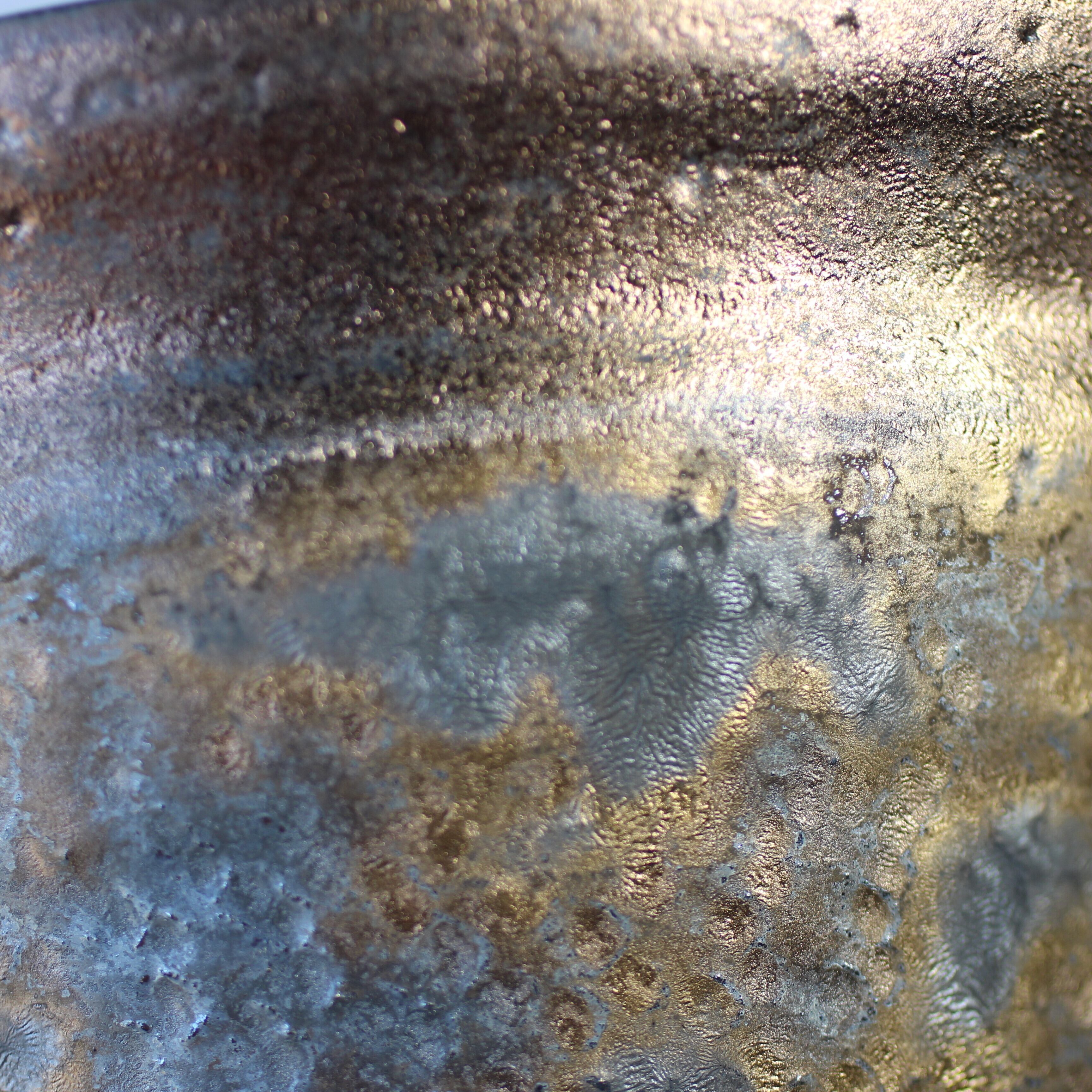 上部に金色が出る釉薬に金斑。下部はマンガン釉です。