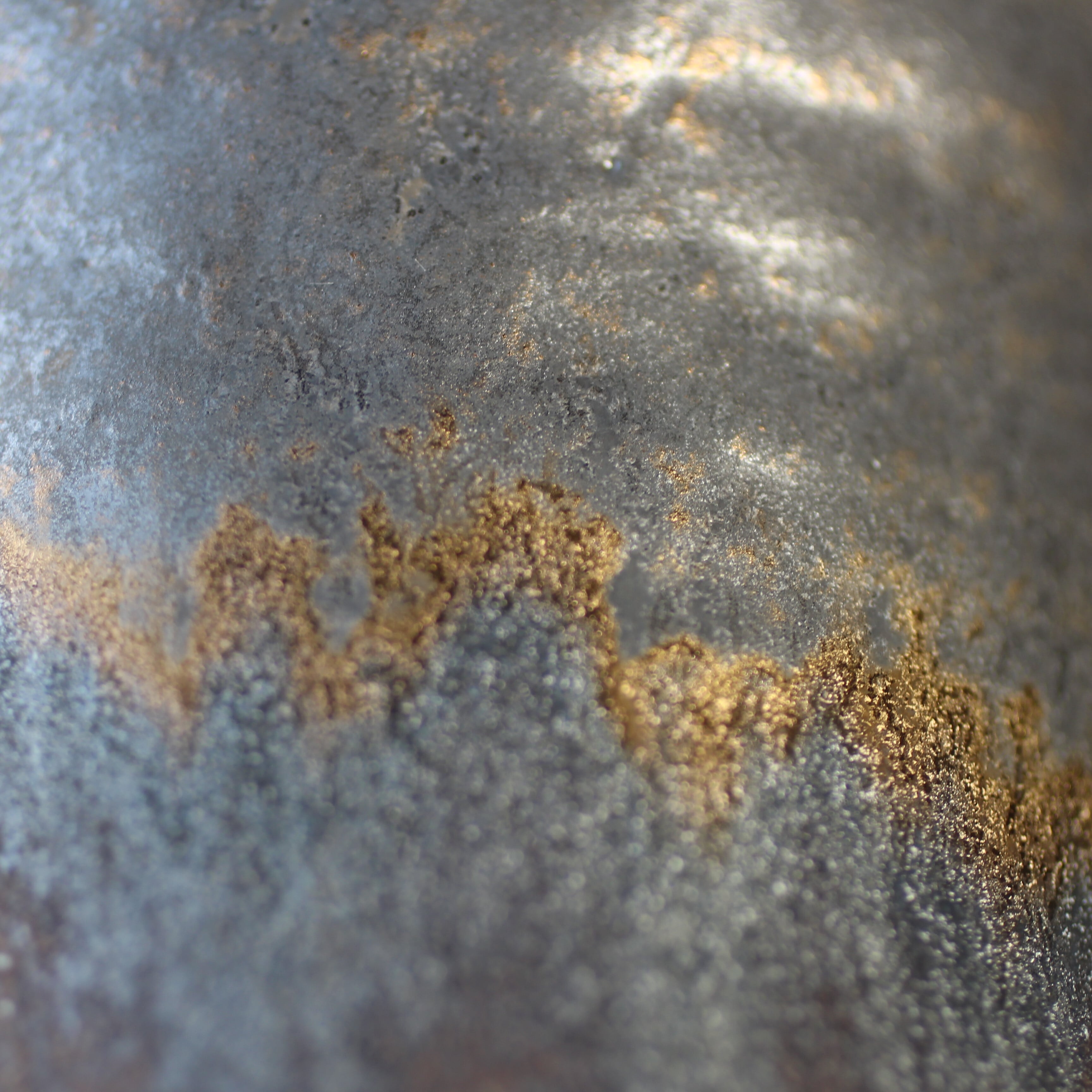 上部に金色が出る釉薬。下部はマンガン釉です。