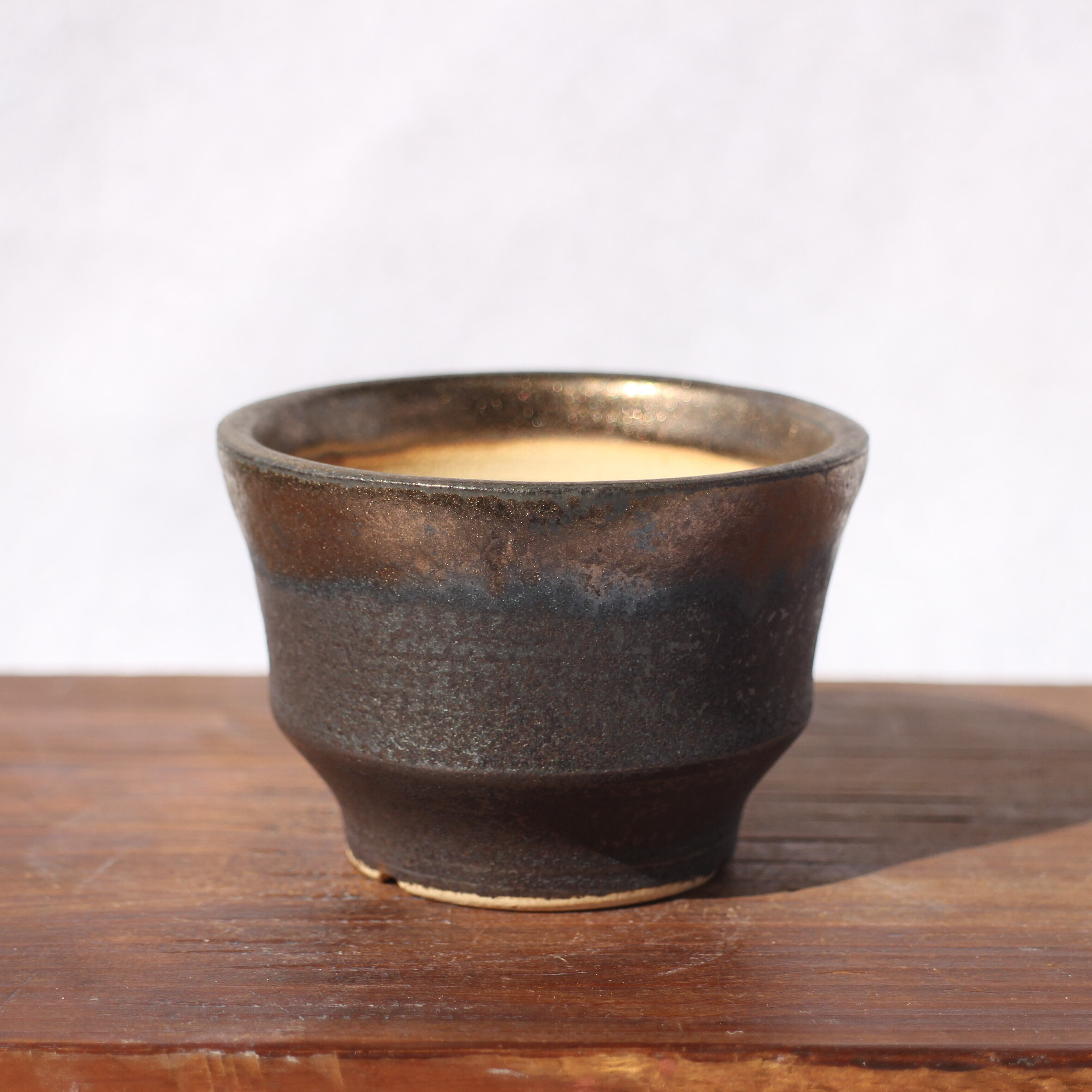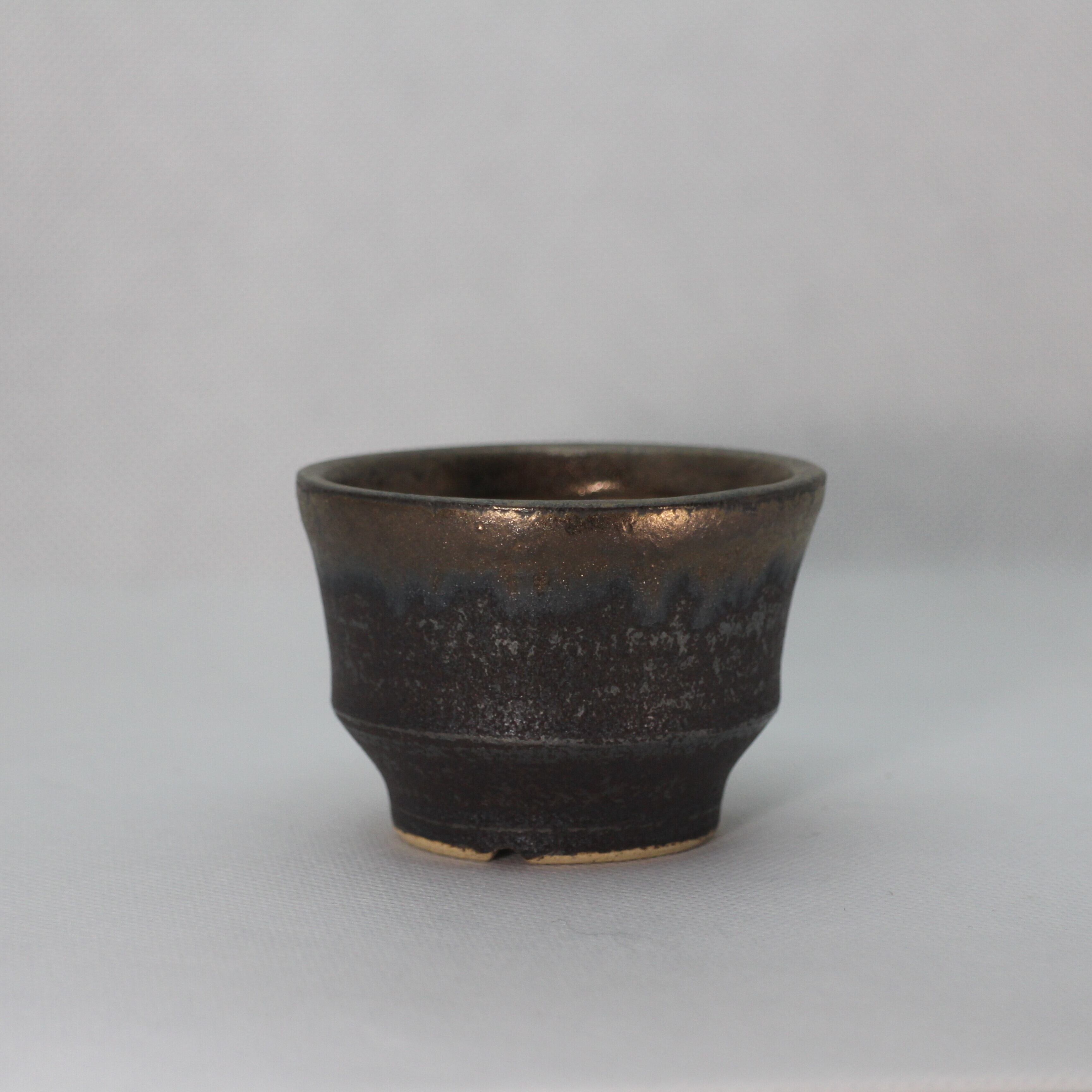 上部に金色が出る釉薬。下部はマンガン釉です。