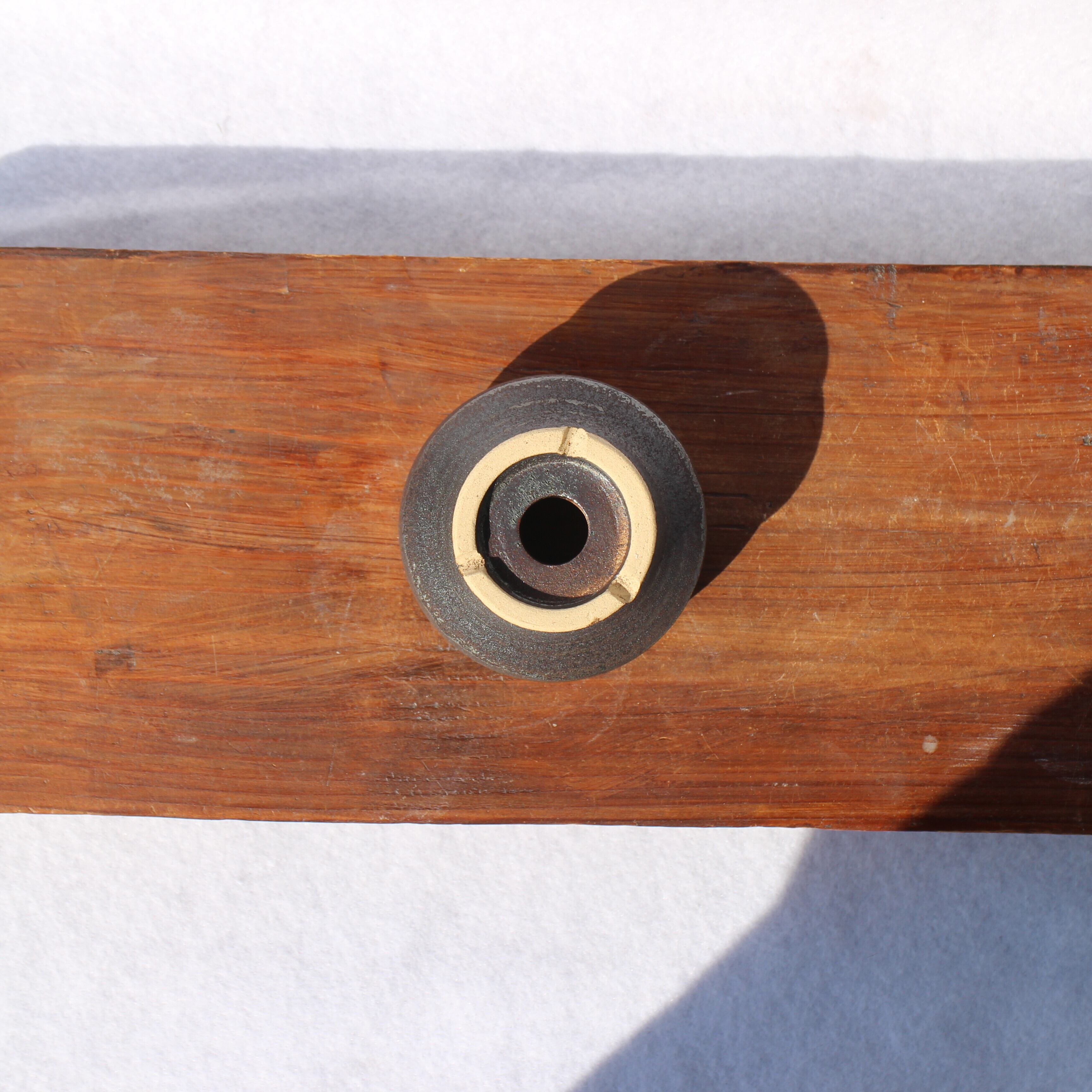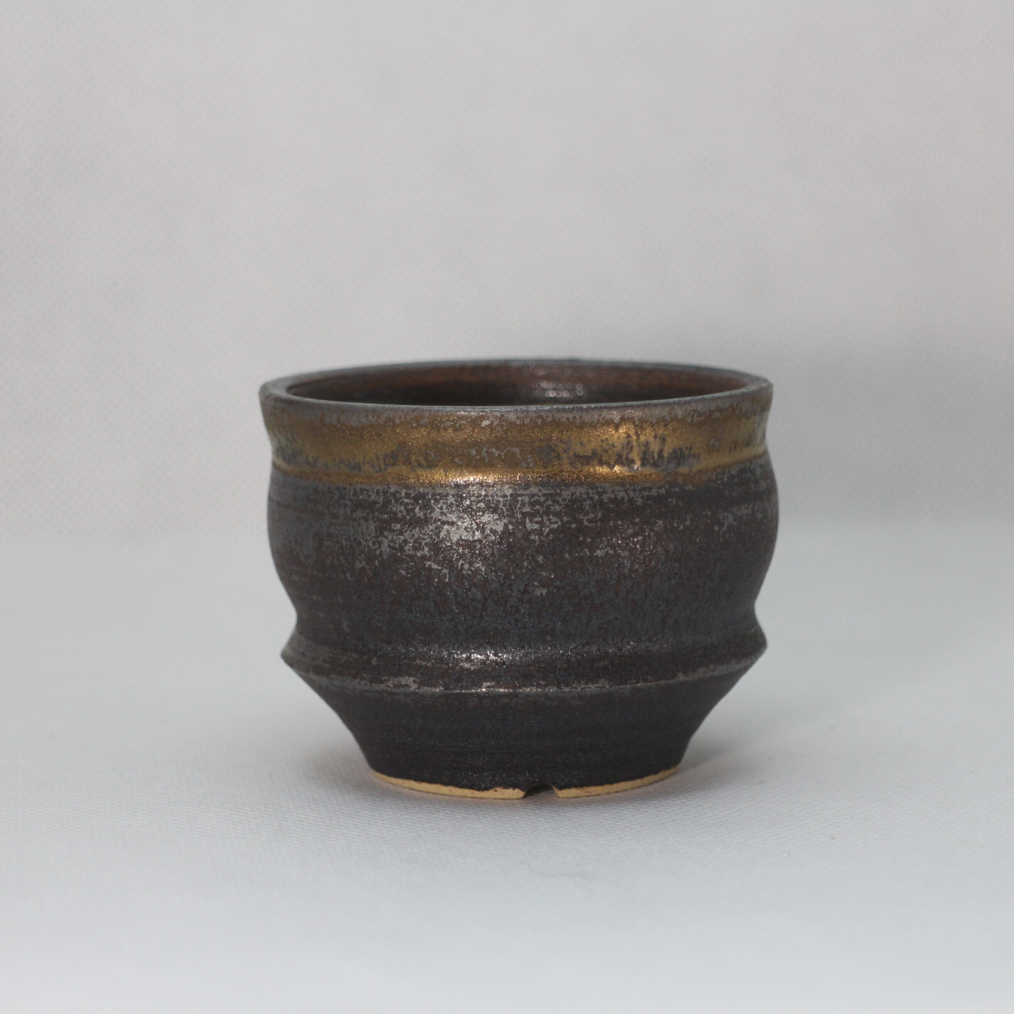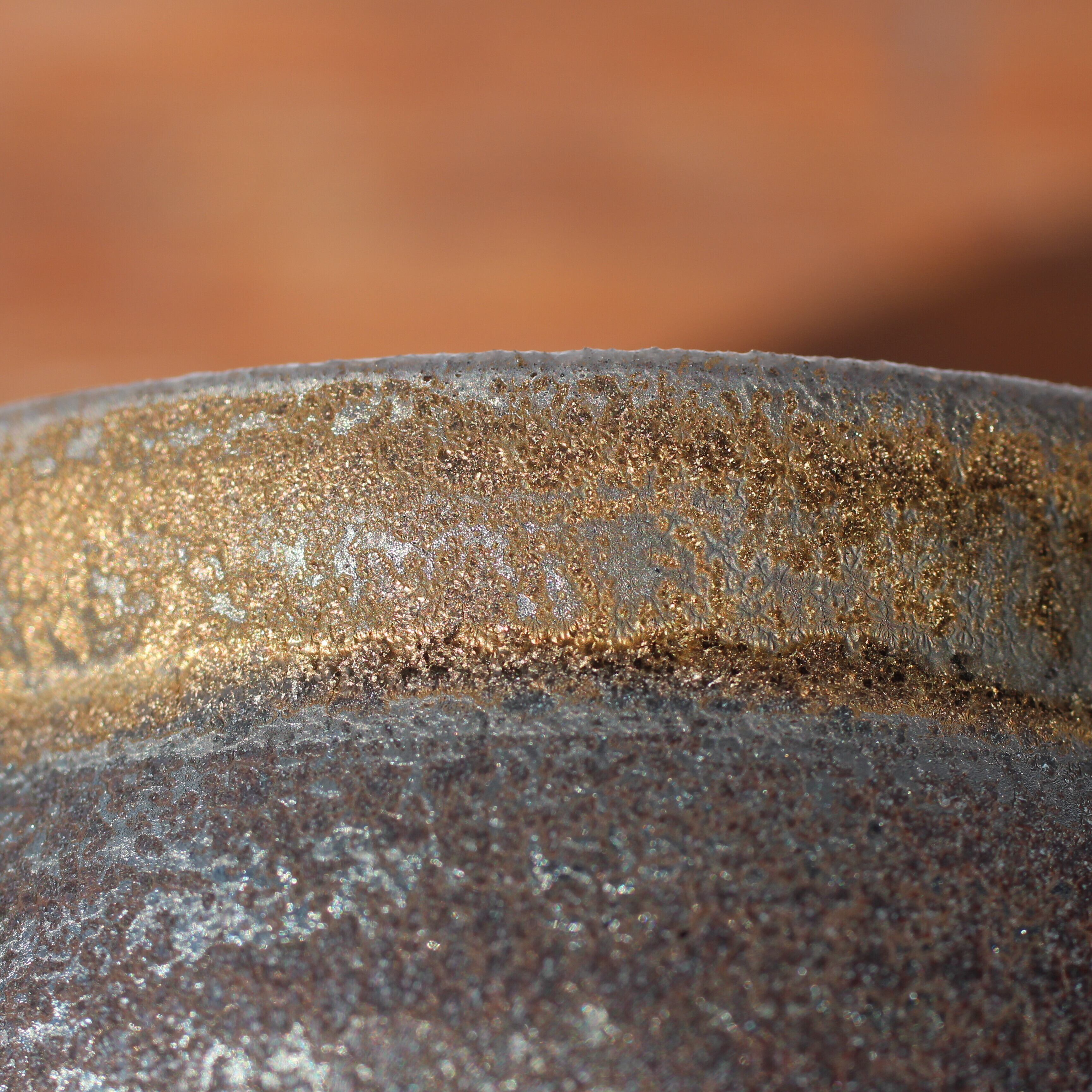 上部に金色が出る釉薬。下部はマンガン釉です。