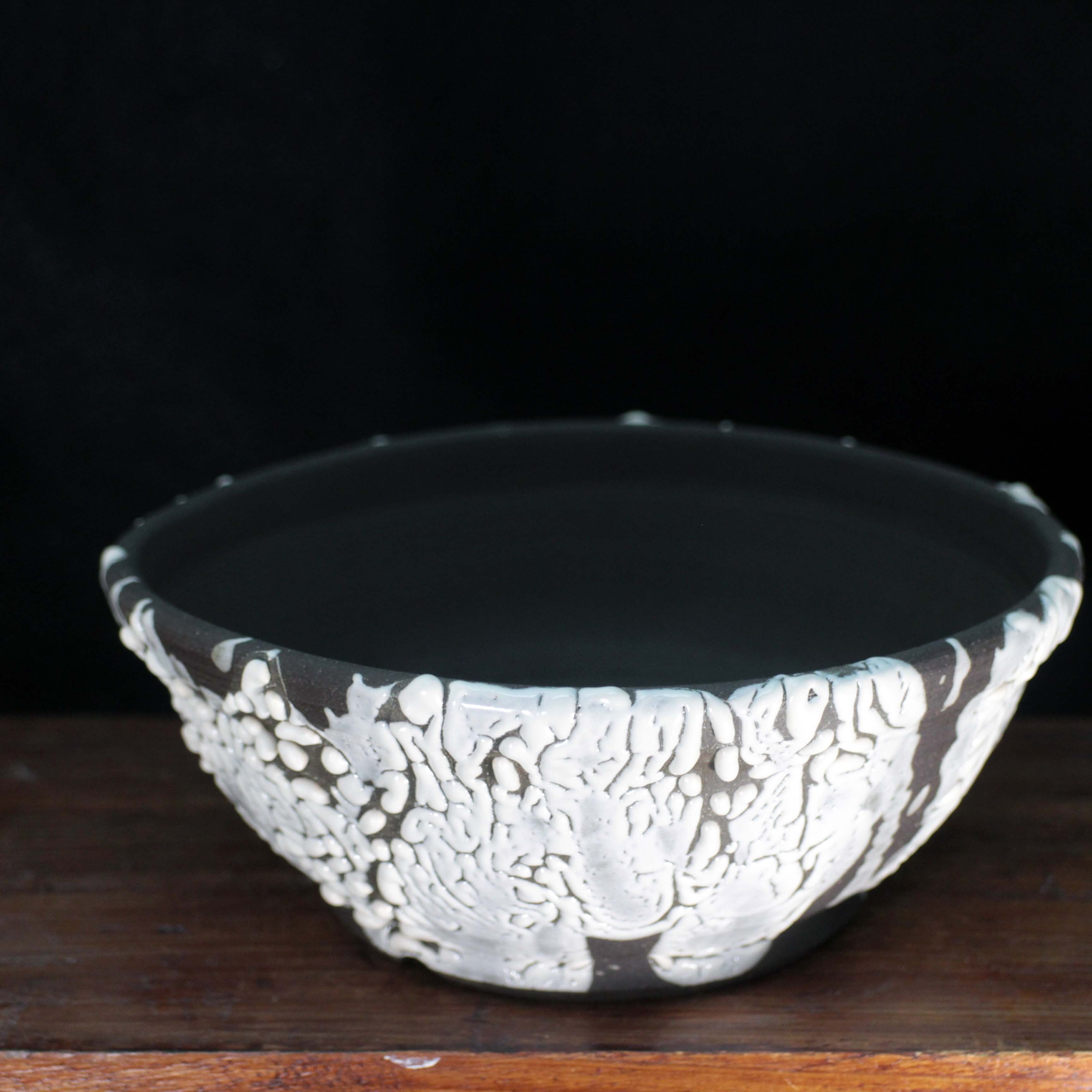 白と黒のコントラストがダイナミックな鉢に仕上がりました。