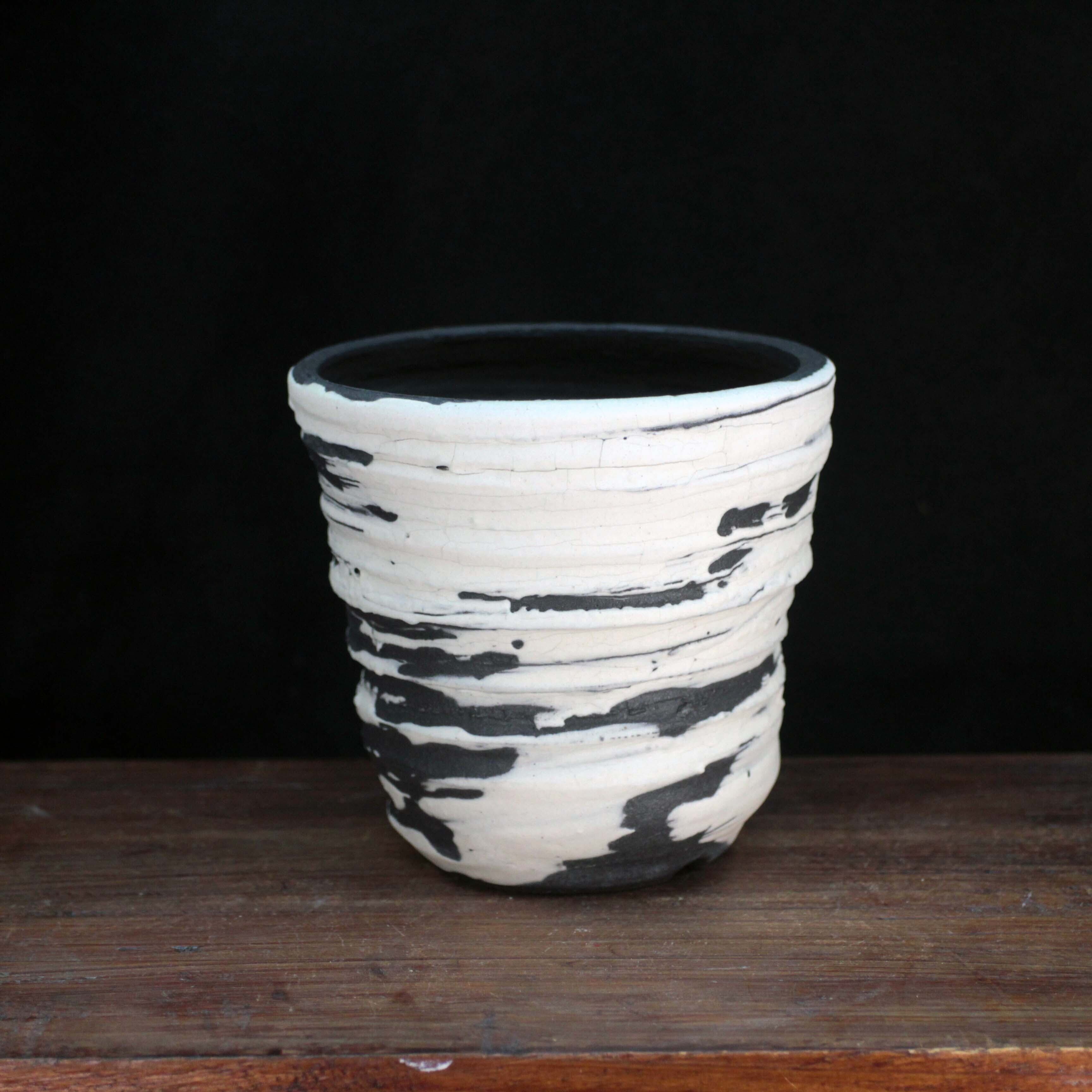 白と黒のコントラストがダイナミックな鉢に仕上がりました。