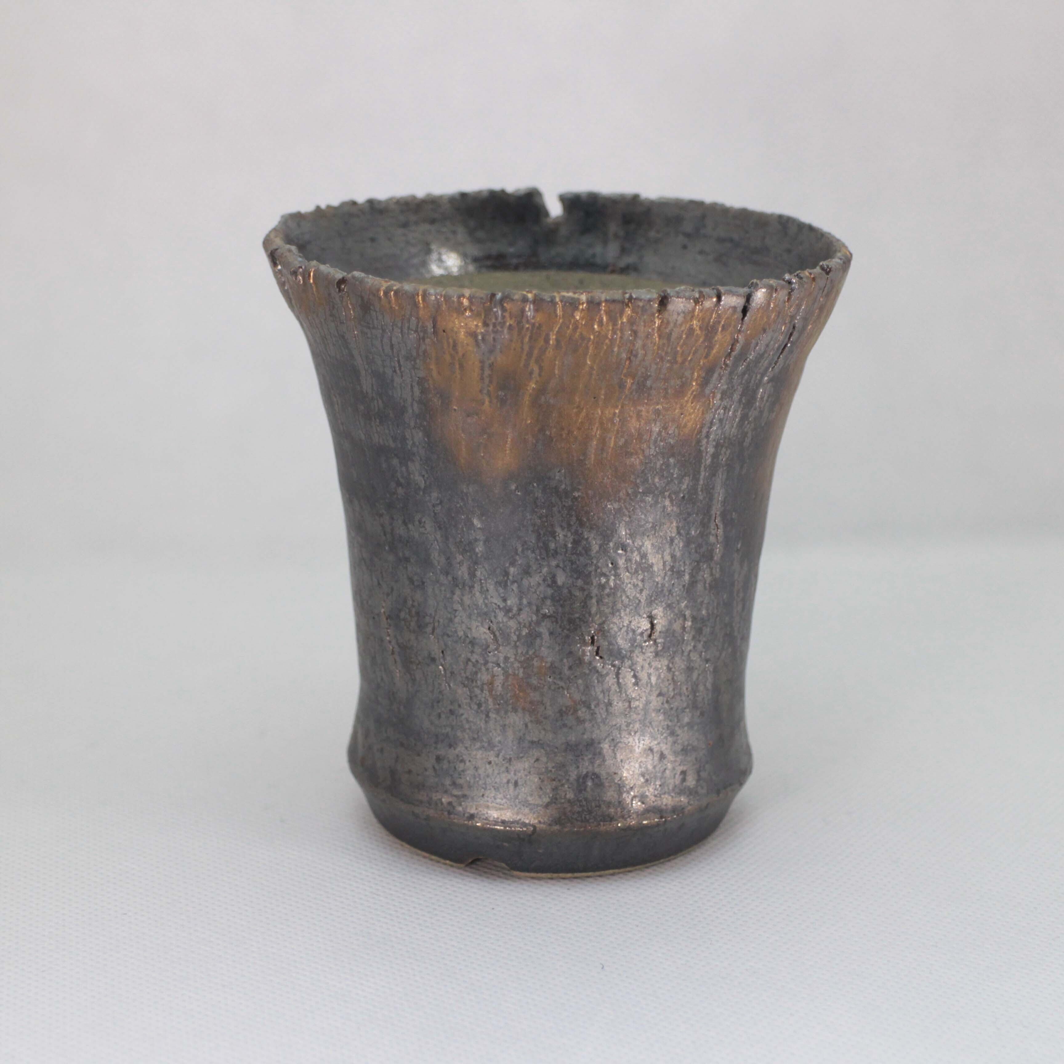 皹の中に金色の出る釉薬を詰めて焼成しました。