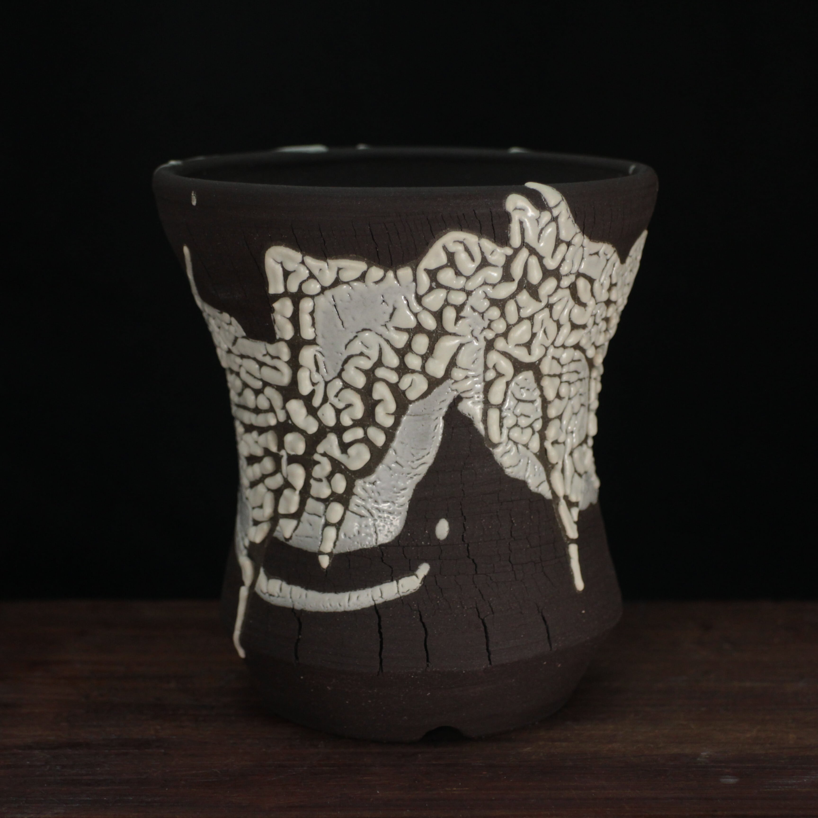 白と黒のコントラストがダイナミックな鉢に仕上がりました。