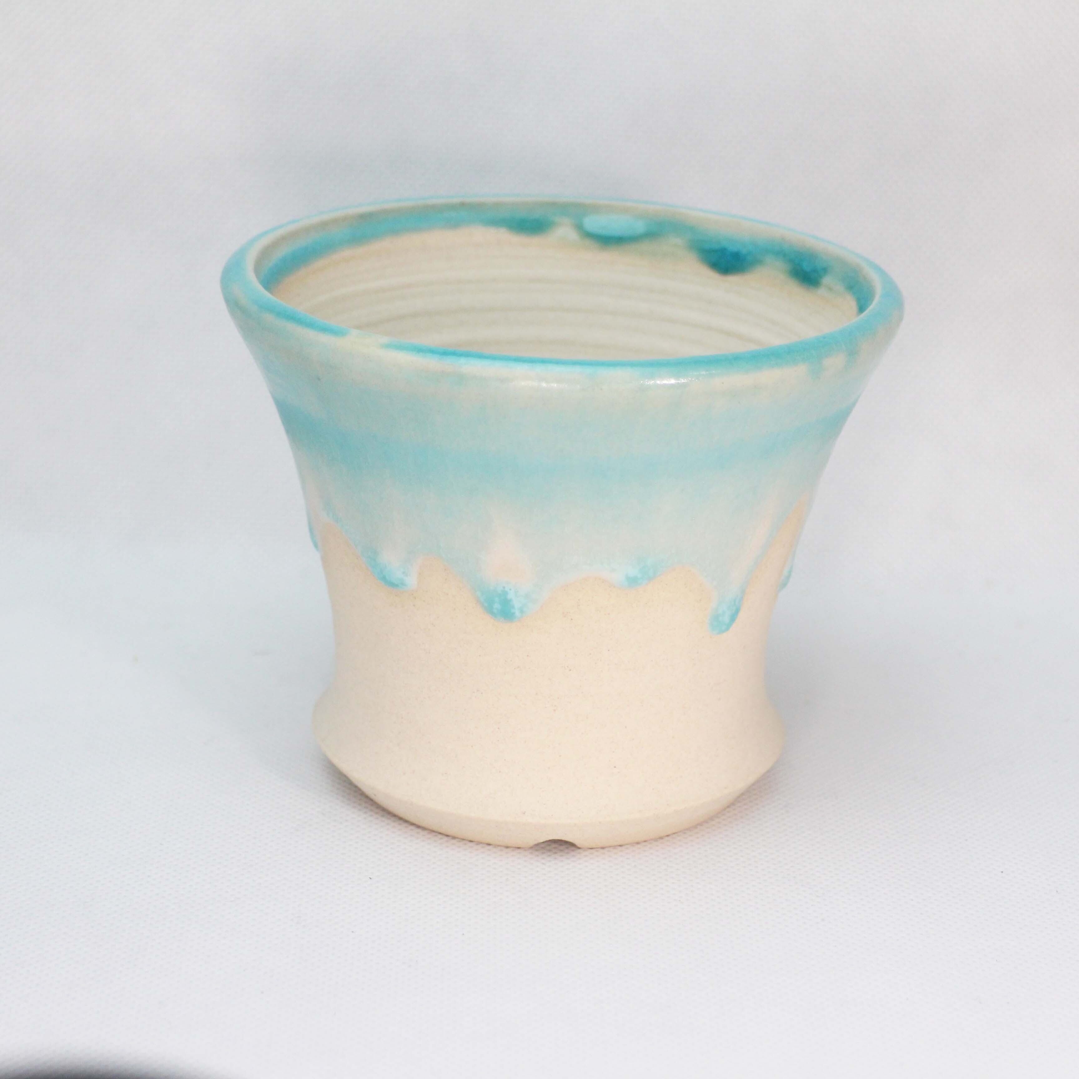 トルコ青の釉薬が垂れた模様が、涼しげで夏の疲れを癒してくれます。