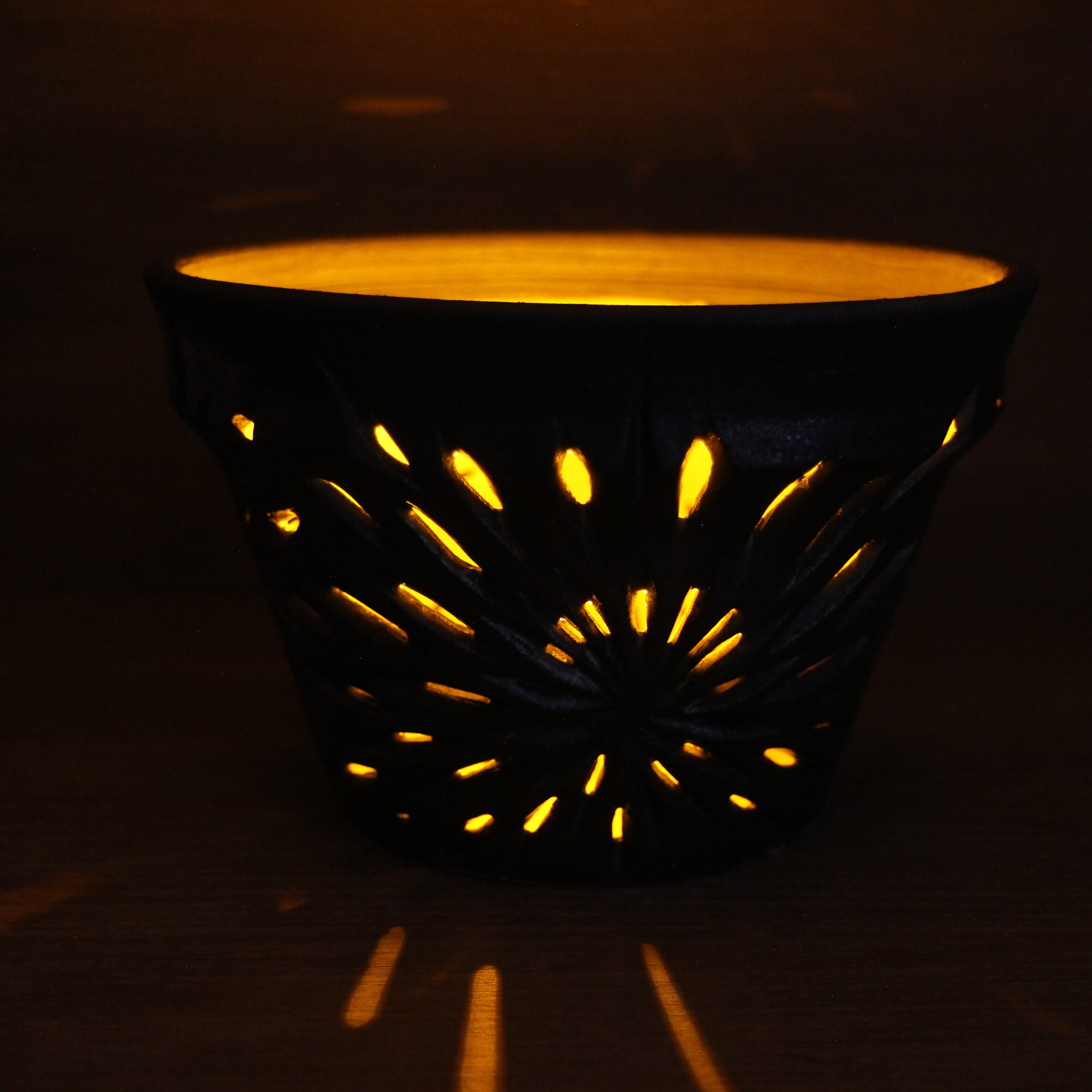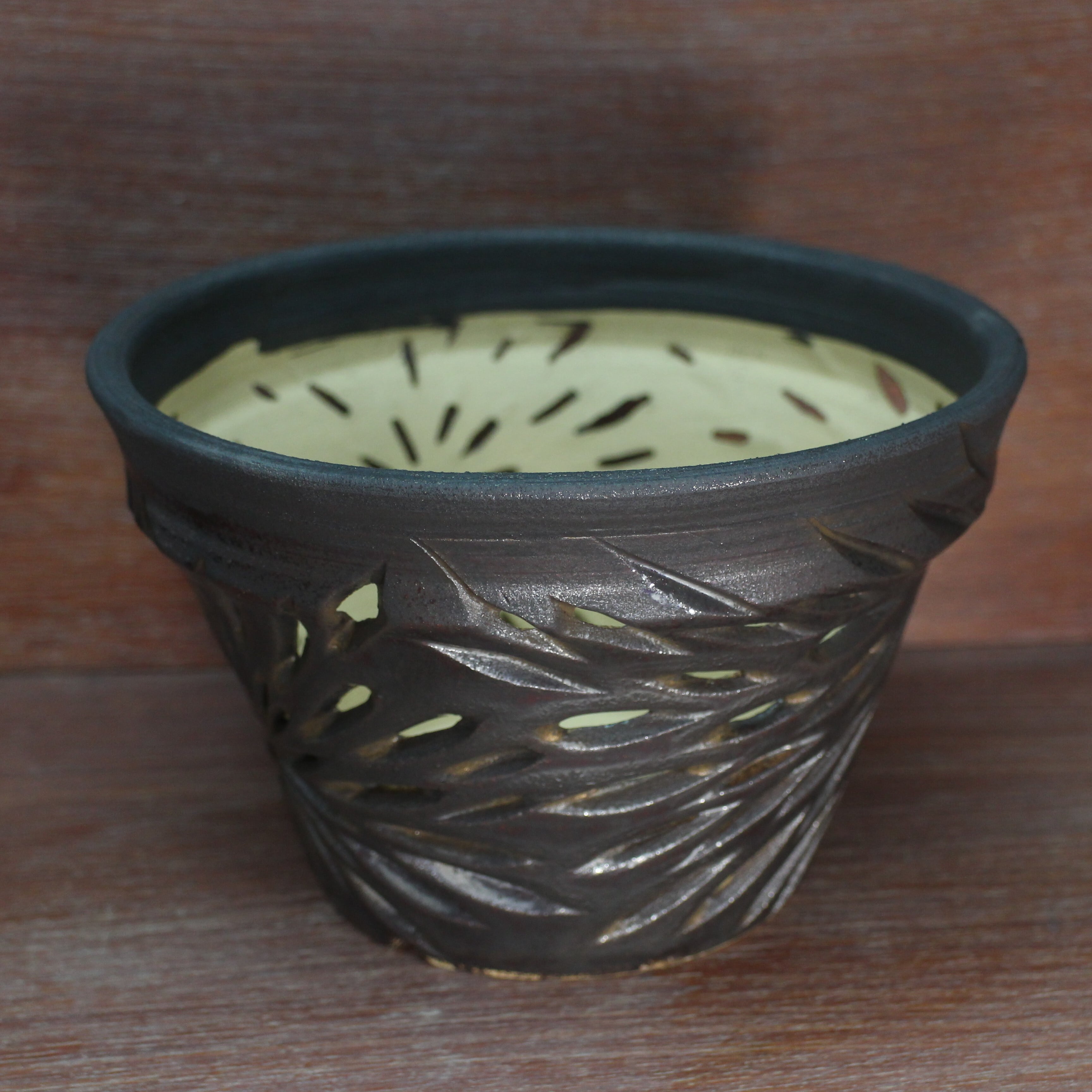 陶芸の技法で「透かし彫り」と言うのを使って、器側面に穴をあけました。