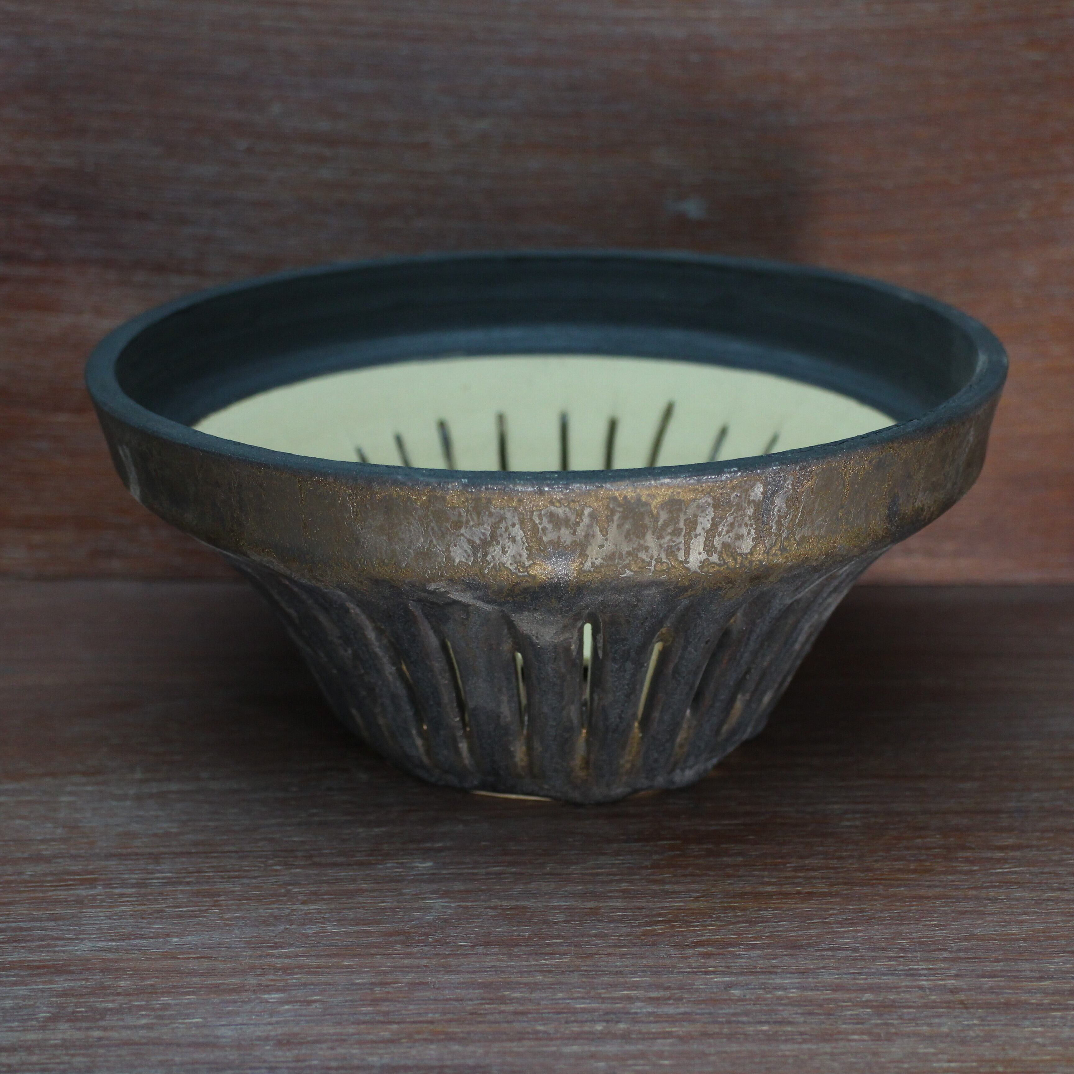 陶芸の技法で「透かし彫り」と言うのを使って、器側面に穴をあけました。