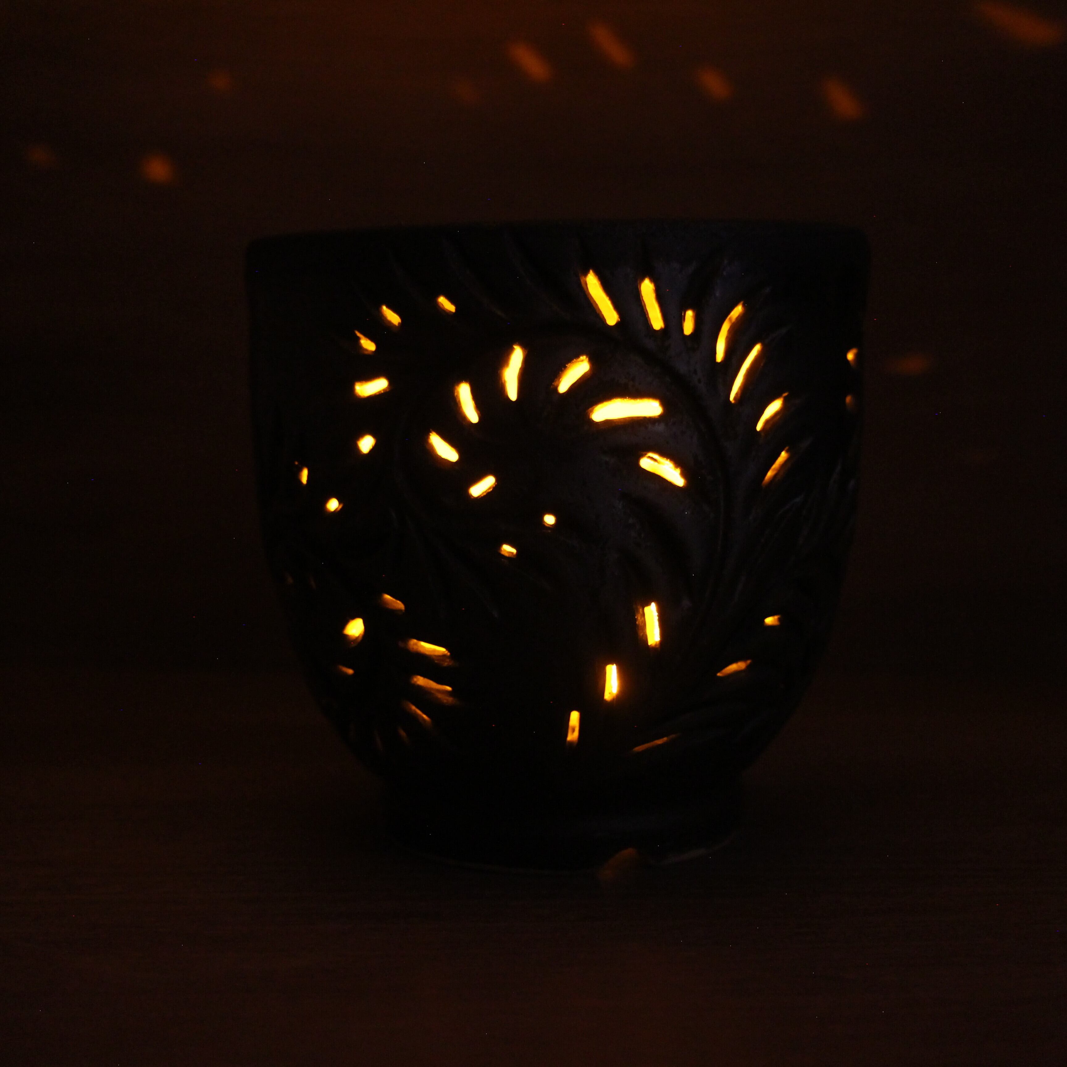 陶芸の技法で「透かし彫り」と言うのを使って、器側面に穴をあけました。