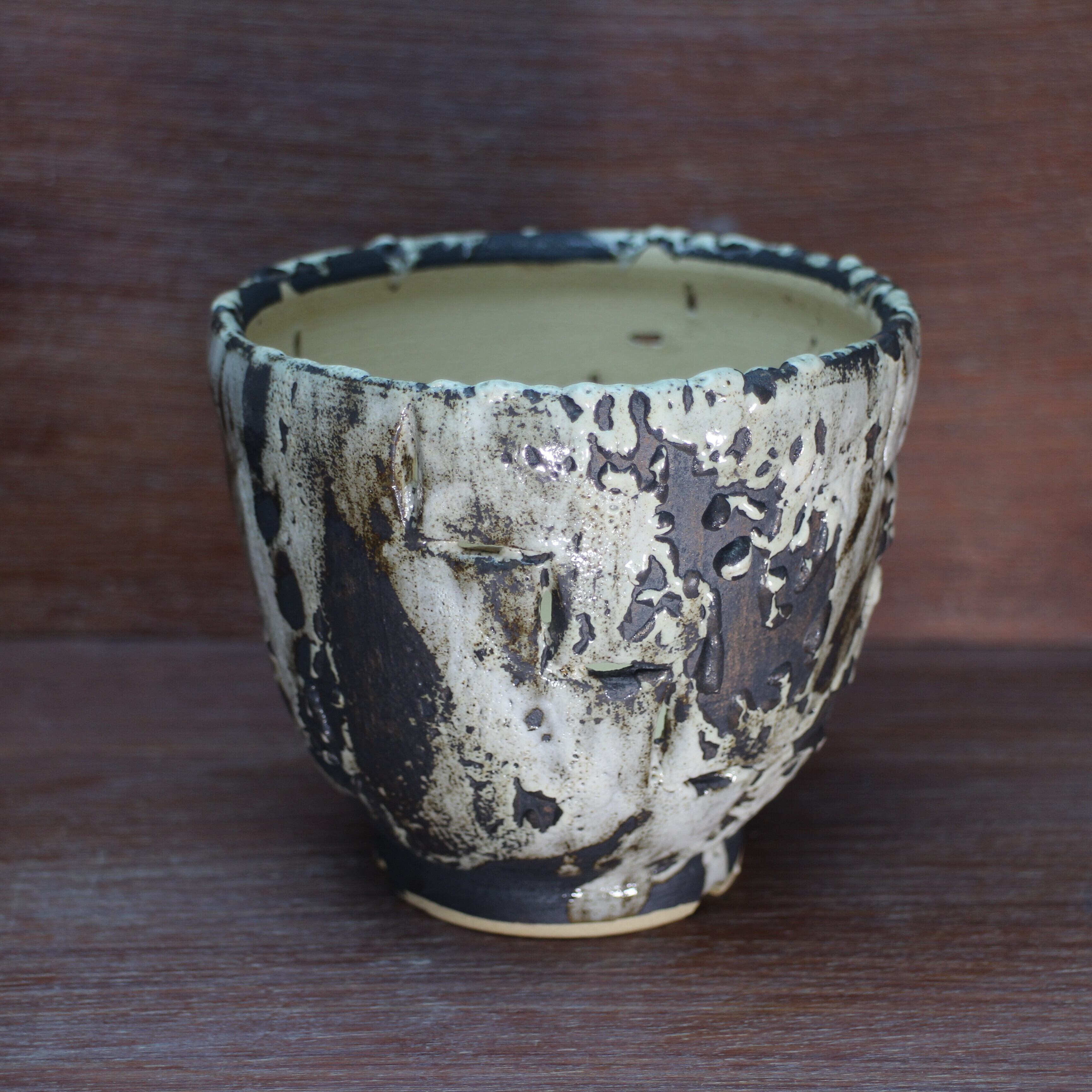 陶芸の技法で「透かし彫り」と言うのを使って、器側面に穴をあけました。
